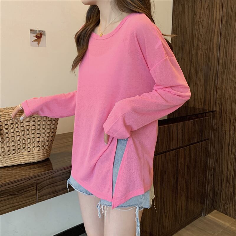 トップス レディース 長袖 薄手 シアー ゆったり 大きいサイズ 日焼け対策 部屋着 さらっと ラウンドネック クルーネック 韓国 MH4425