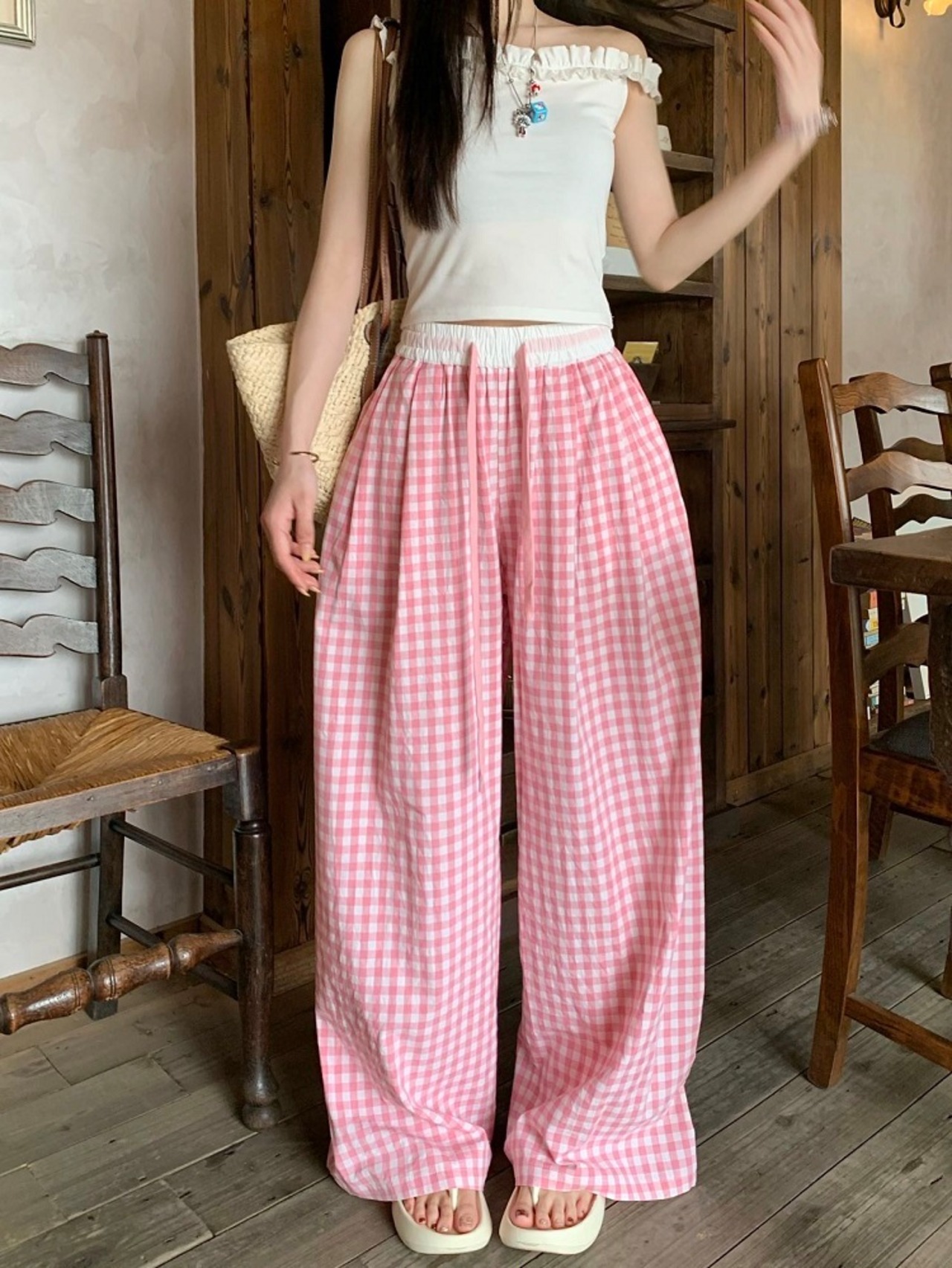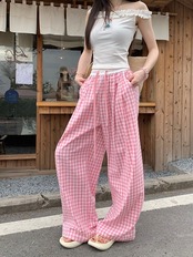 パンツ レディース ロング丈 ワイドパンツ ワイドレッグ ギンガムチェック ウエストゴム ハイウエスト リラックス ゆったり カジュアル MH4512