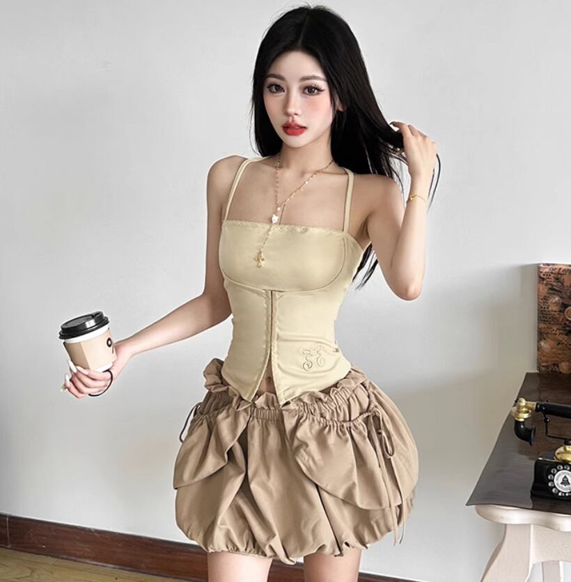 キャミソール キャミ ビスチェ風 春夏 ホルターネック トップス セクシー バックオープン へそ出し ガーリー クール ベージュ ab3377