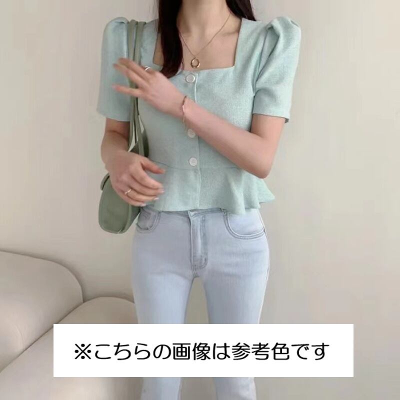 スクエアカラーのトップス。