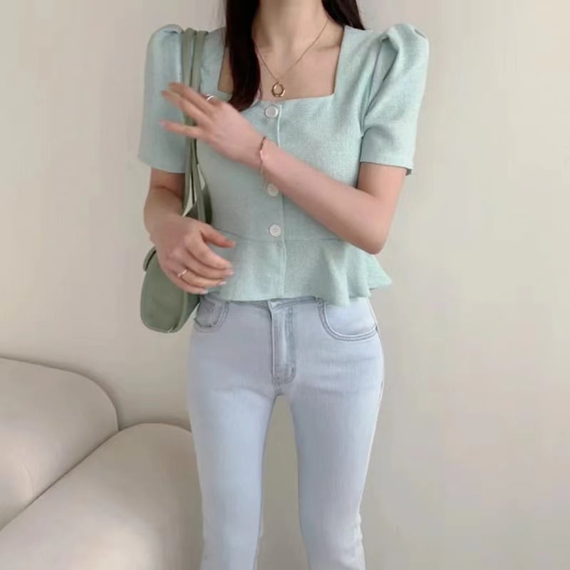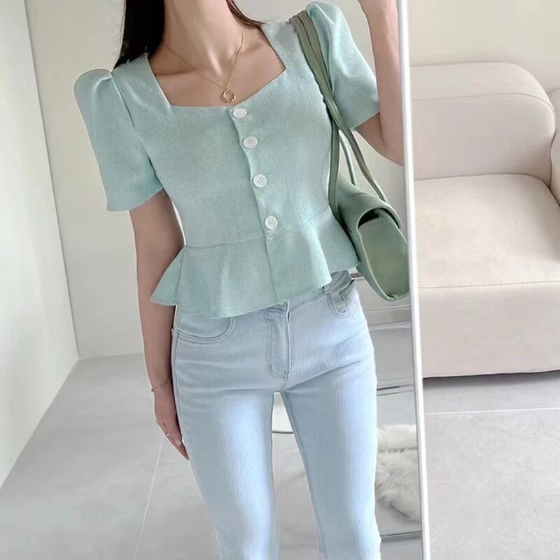 トップス レディース ジャケット アウター スクエアカラー ツイードジャケット 半袖 ショート ハーフスリーブ ガーリー スウィート キュート カジュアル MH4586