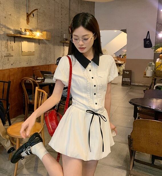 ワンピース レディース ロング丈 ポロ襟 半袖 ミニ丈 ショート丈 さわやか カジュアル ガーリー 夏 MH4591