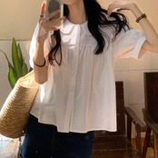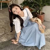 丸襟ブラウスとジャンパースカートの組み合わせがキュート♡