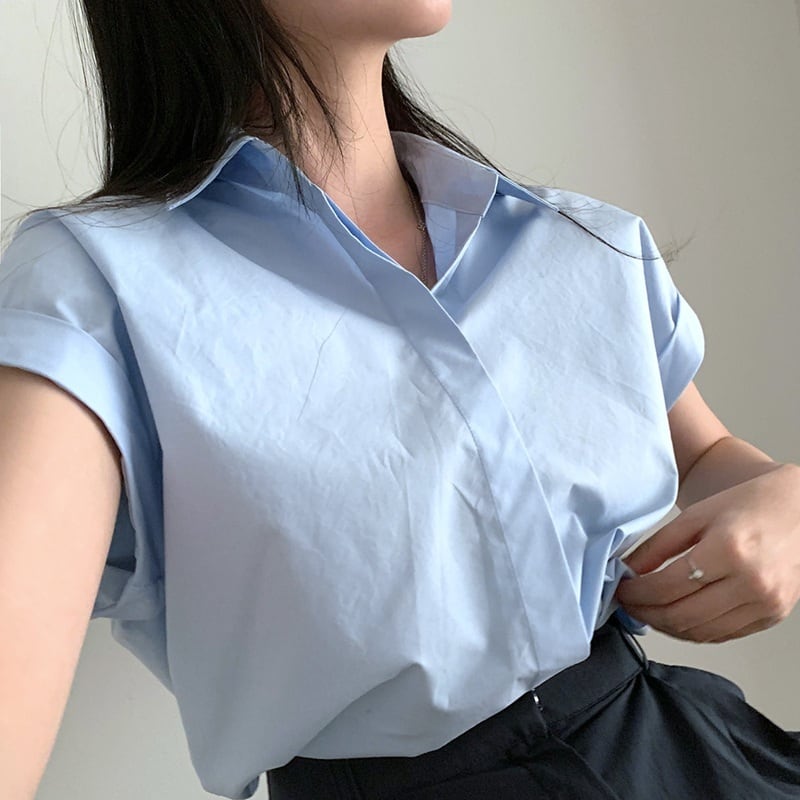 トップス レディース ブラウス シャツ 半袖 フレンチスリーブ シンプル 二の腕カバー 夏 シック 通勤 おしゃれ オフィス MH4619