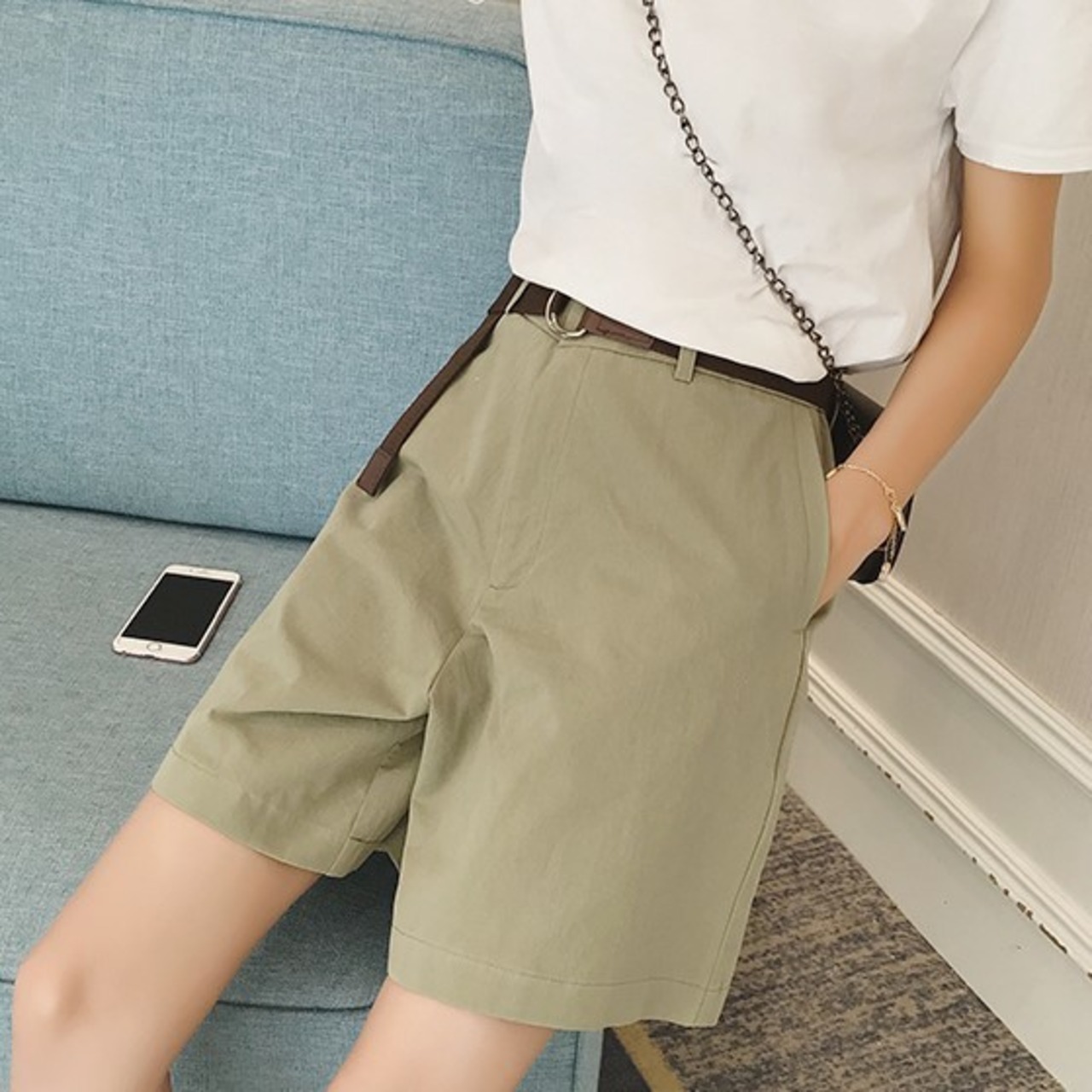 4色展開 ベルト付き ショートパンツ パンツ ボトム レディース ショーパン ハーフパンツ シンプル 大きいサイズ リンネル系 193-67