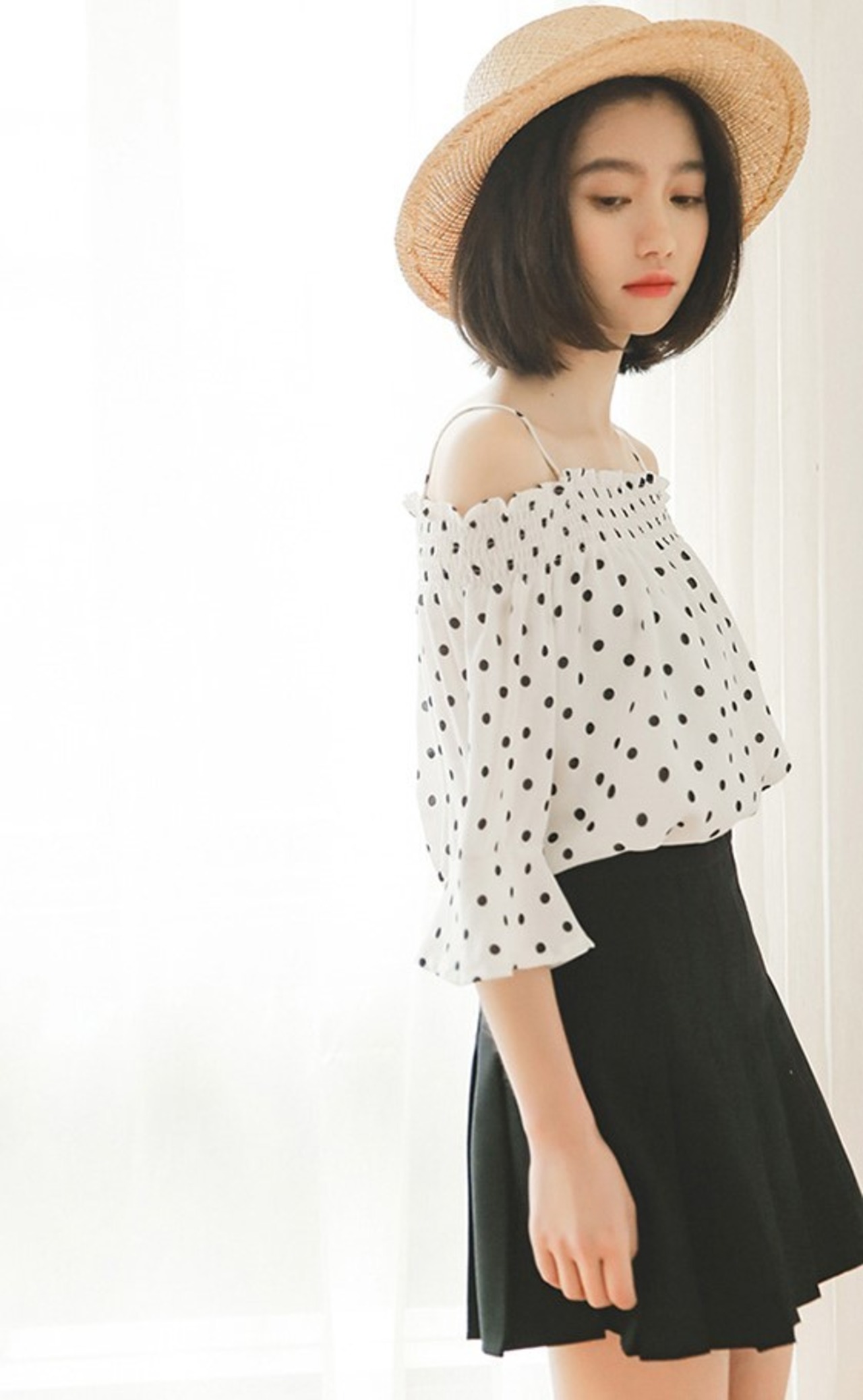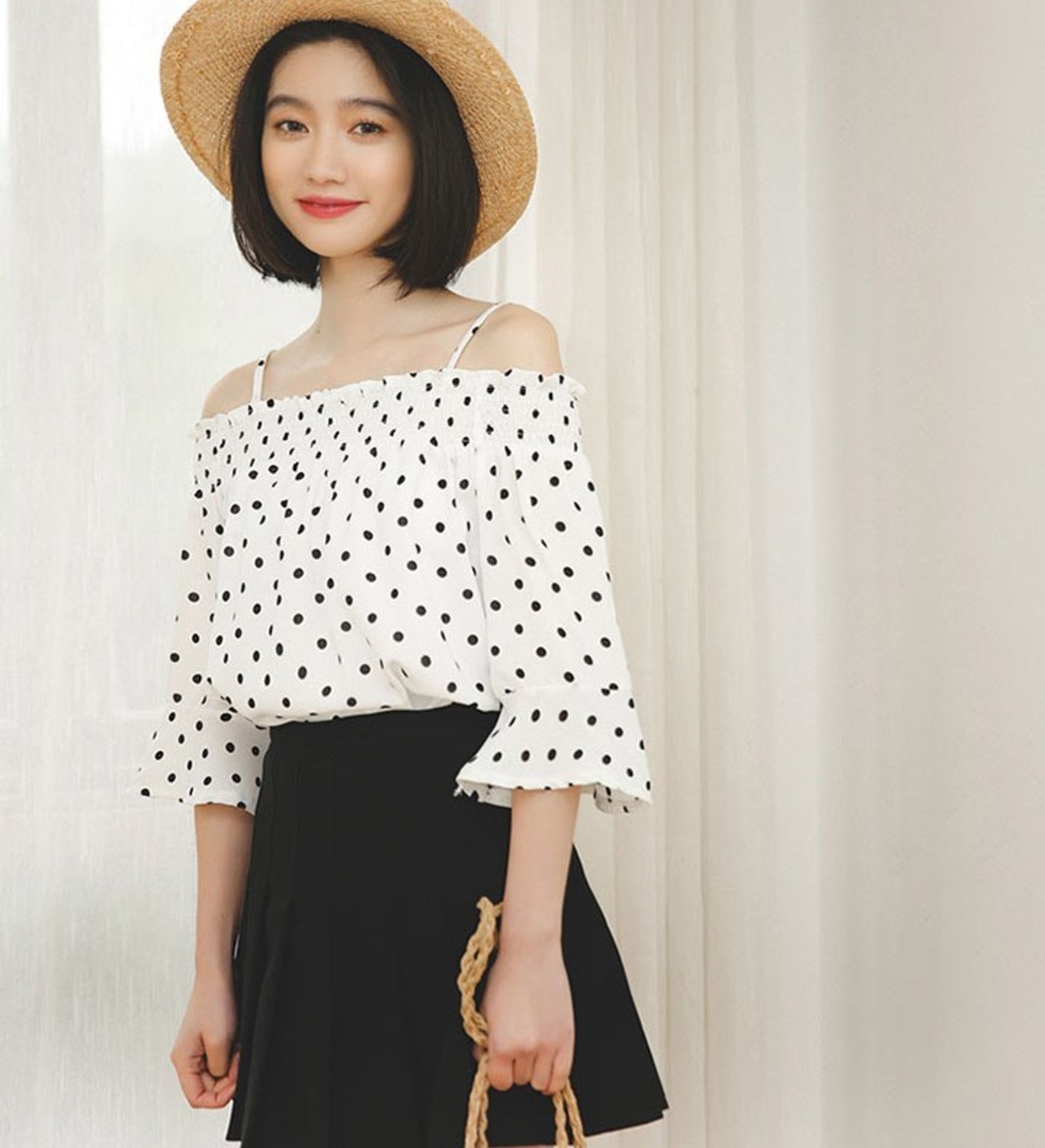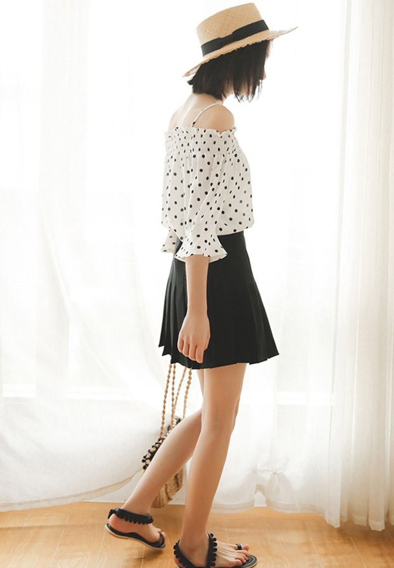 肩紐ストラップの細かなところまで全面ドット柄でとってもかわいいです♪