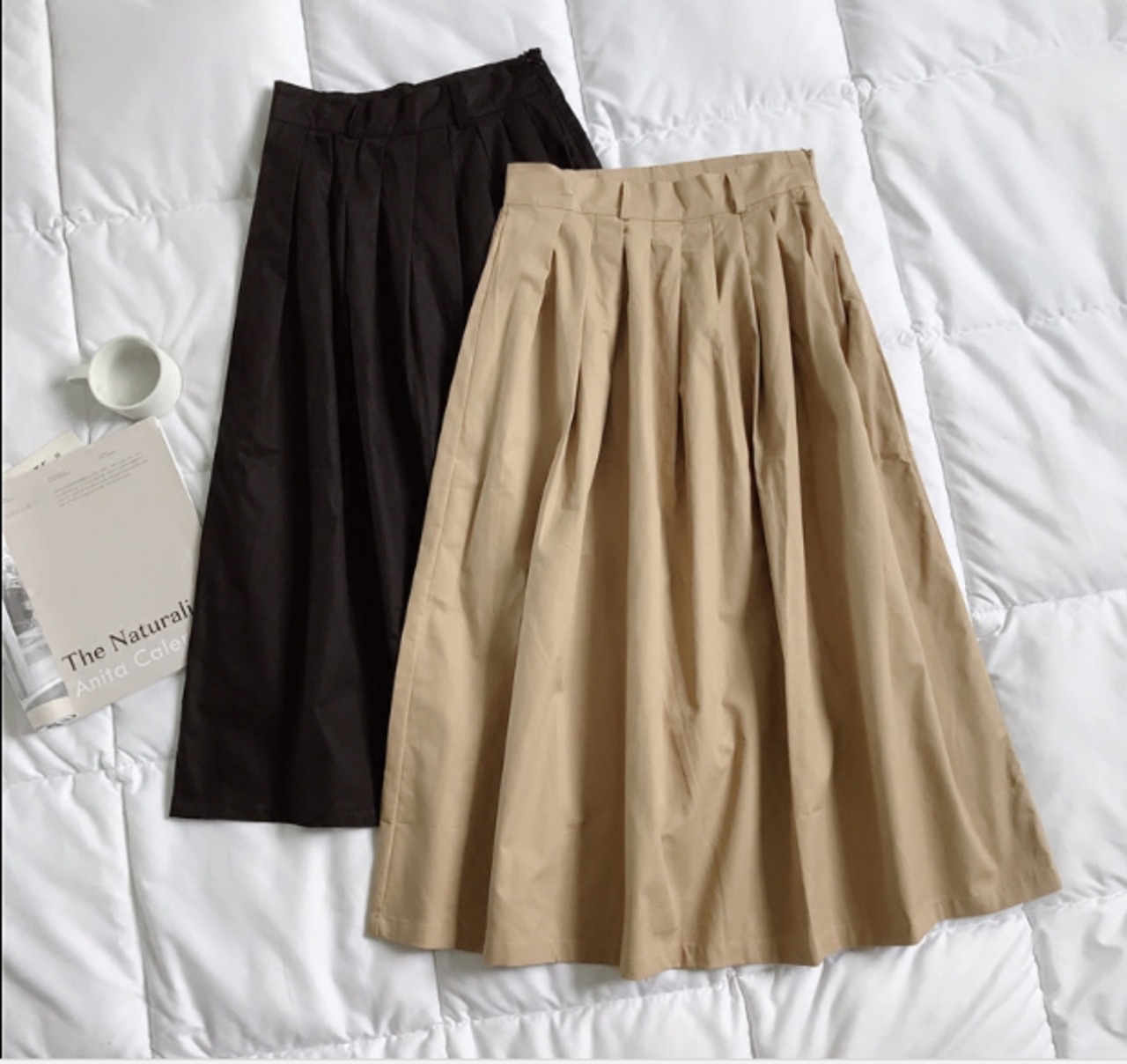 ロングスカート ハイウエスト プリーツスカート ナチュラル シンプル MH0007