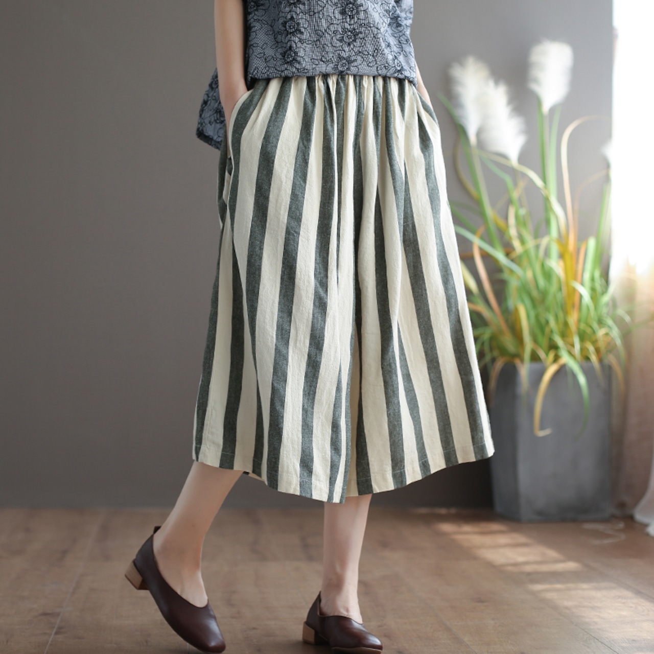 ストライプのガウチョパンツです。