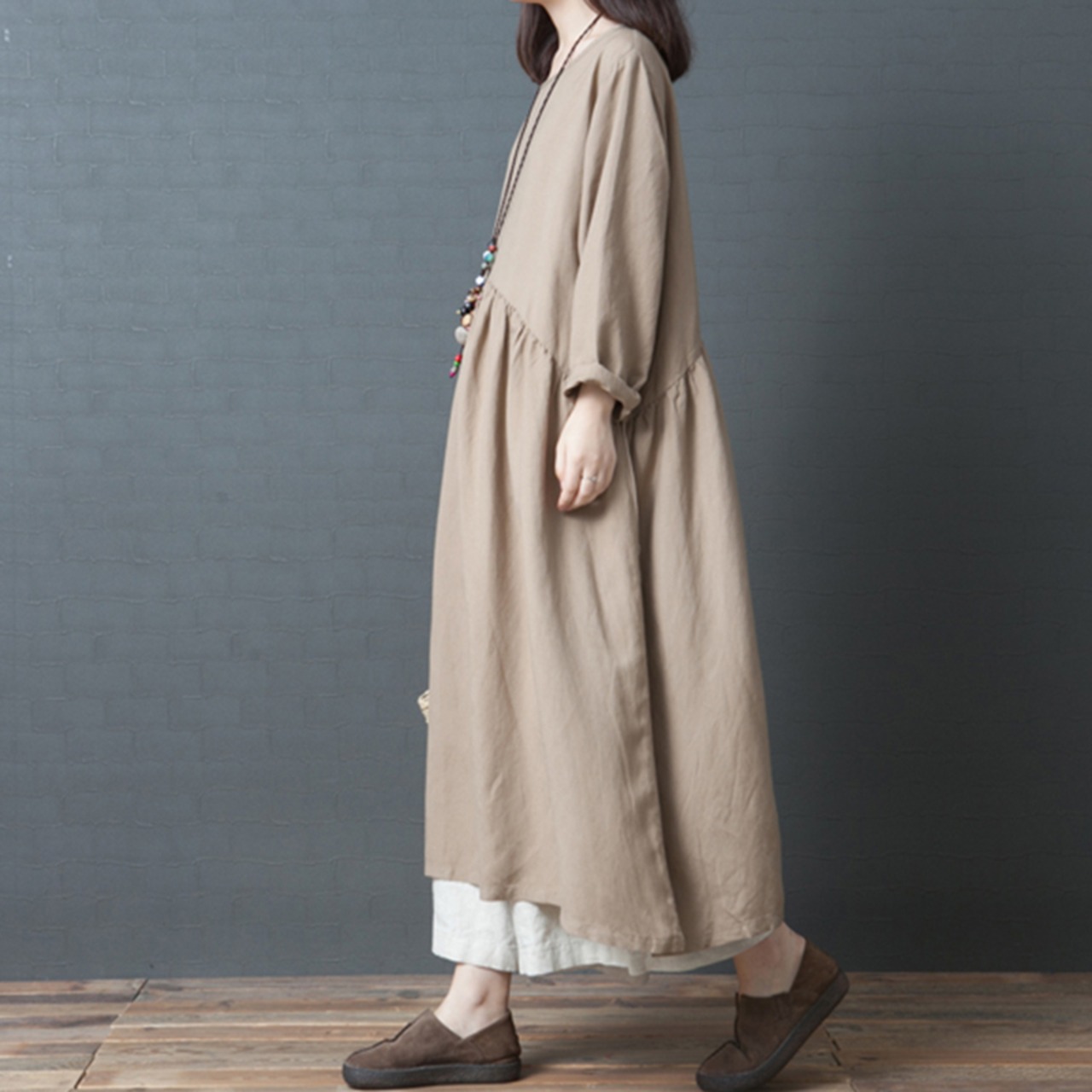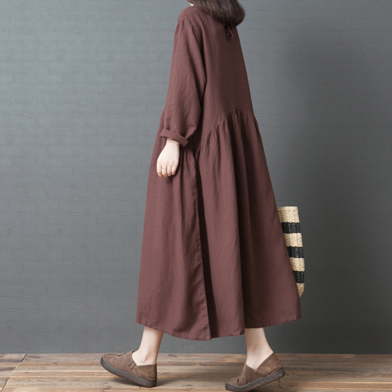 ゆったりサイズ 秋色 リネンワンピース ロング丈 マキシ丈 大きいサイズ シンプル MH0047