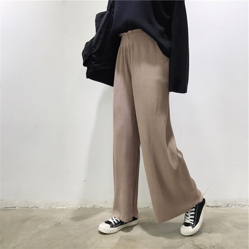 ハイウエスト ルーズ パンツ リブパンツ ワイドパンツ ストレート MH0051