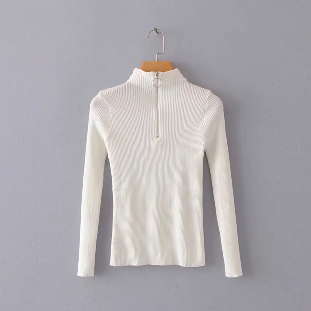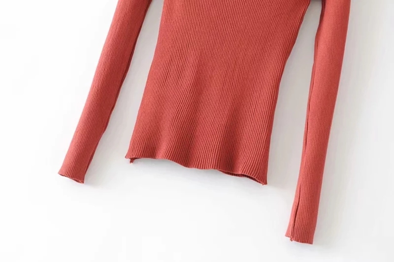 ハイネックのリブニットカットソーです。