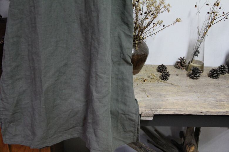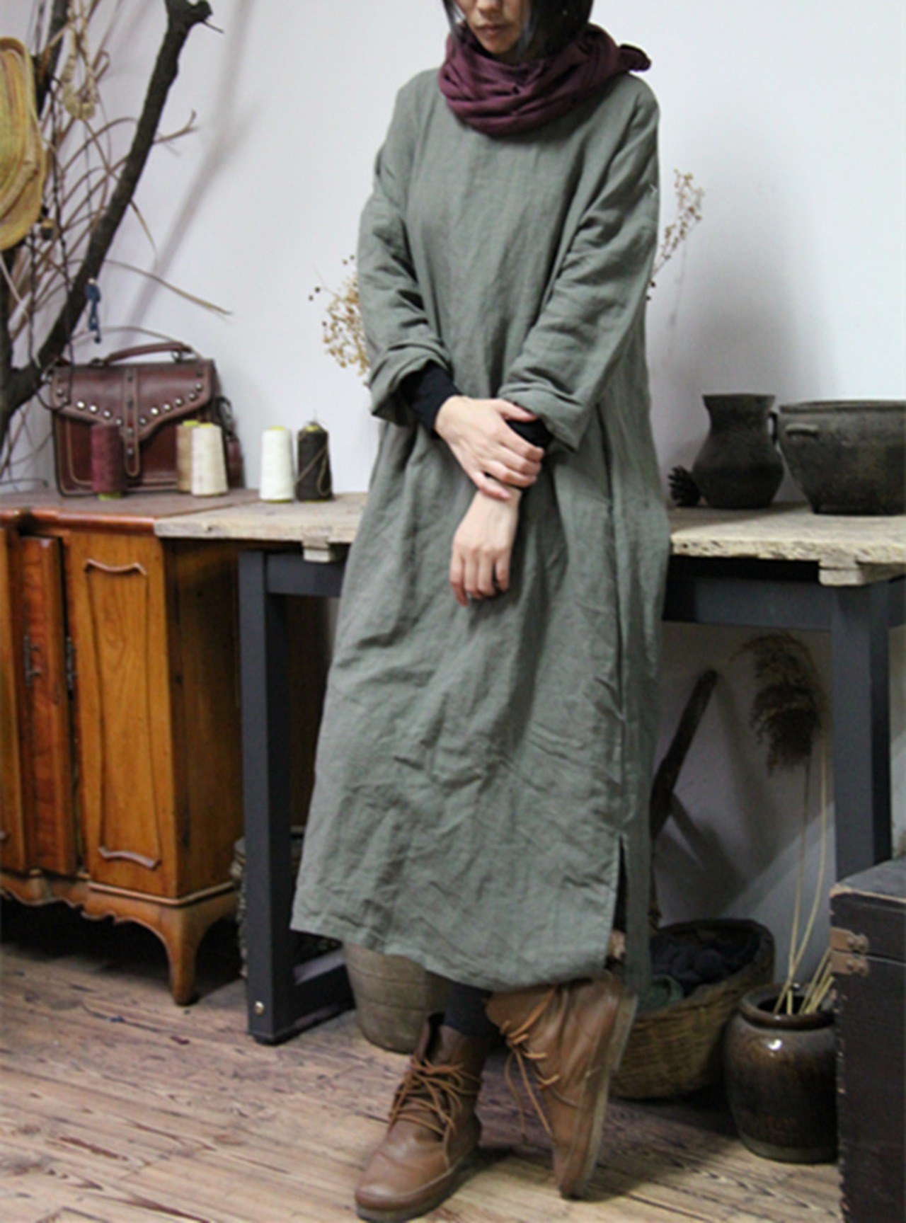 レトロ リネンワンピース マキシ丈 ヴィンテージ風 ロング丈 MH0058