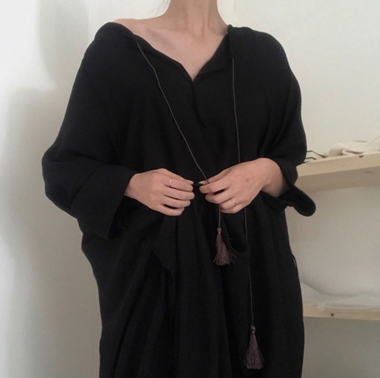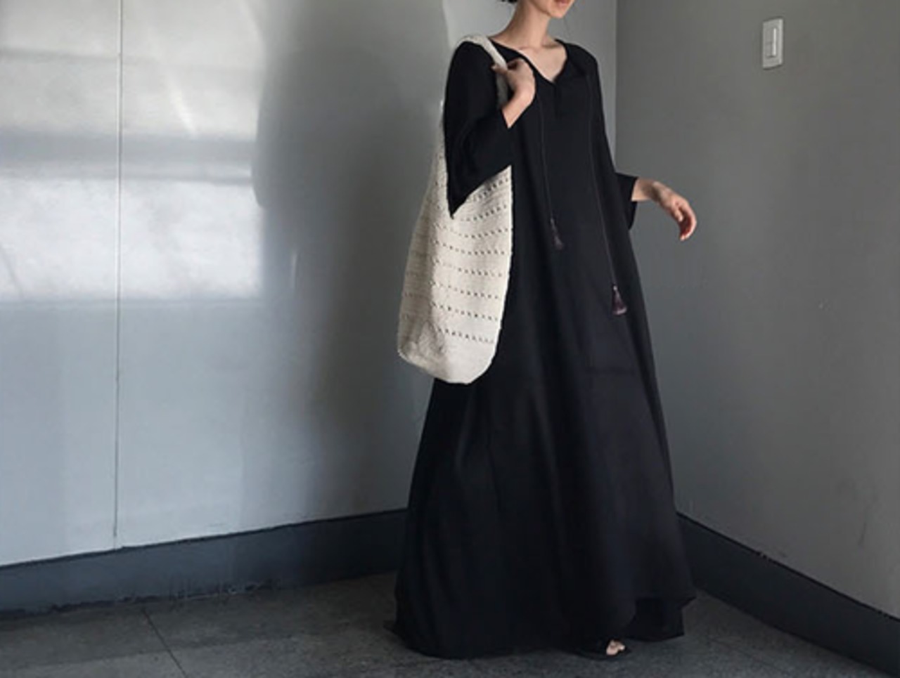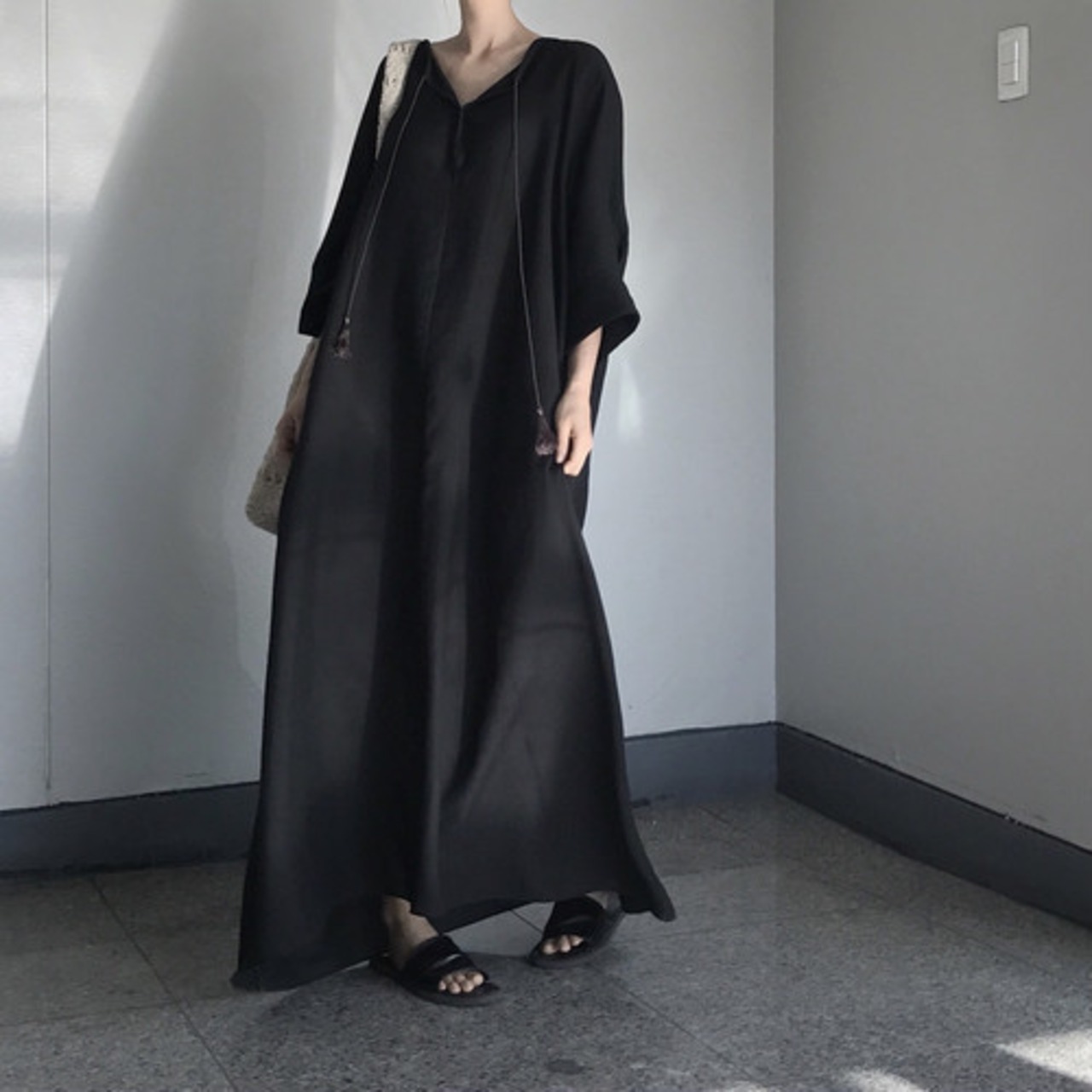 ワンピース マキシ丈 ロング丈 無地 黒 ブラック 体型カバー ゆったり yi339