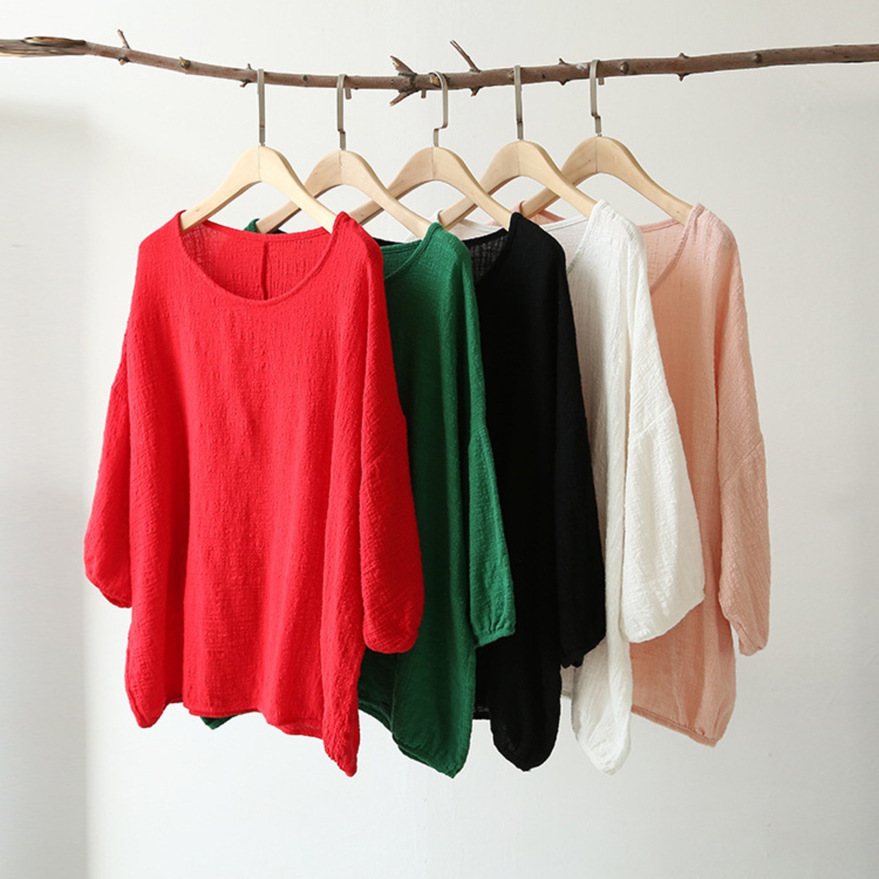 リネン ラウンドネック ブラウス トップス 7分袖 ナチュラル シンプル MH0132