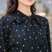 幼くなりがちなドット柄もモノトーンでシックな印象に。