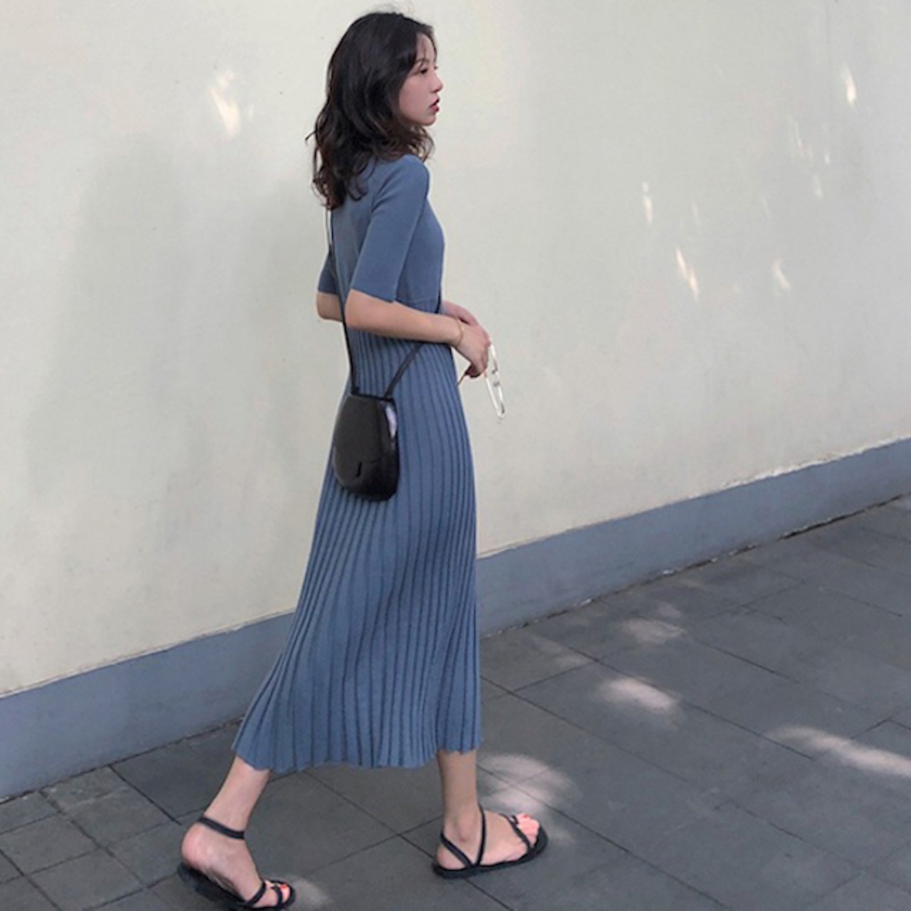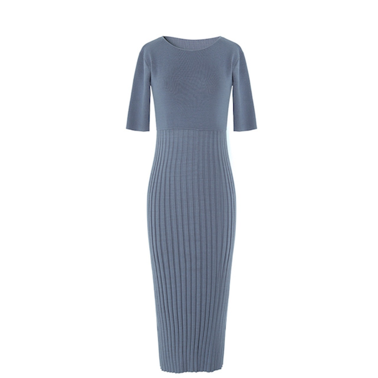 ワンピース ロング丈 マキシ丈 ニットワンピース 無地 ハイウエスト 切り替え 5分袖 大人かわいい 秋冬 yi350
