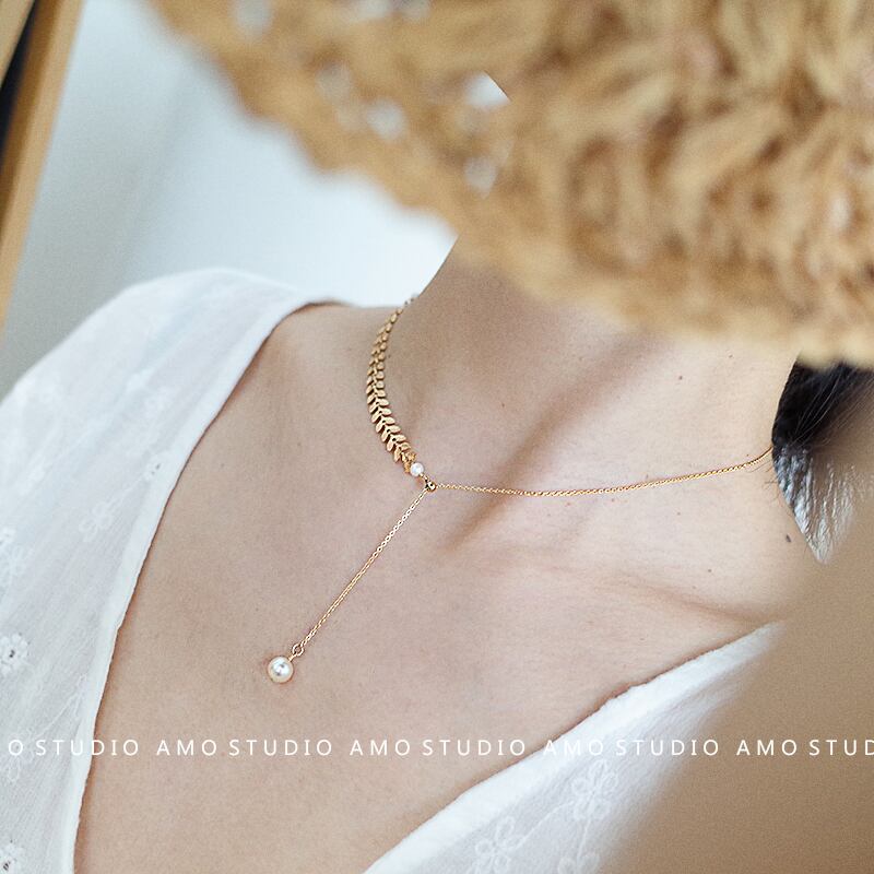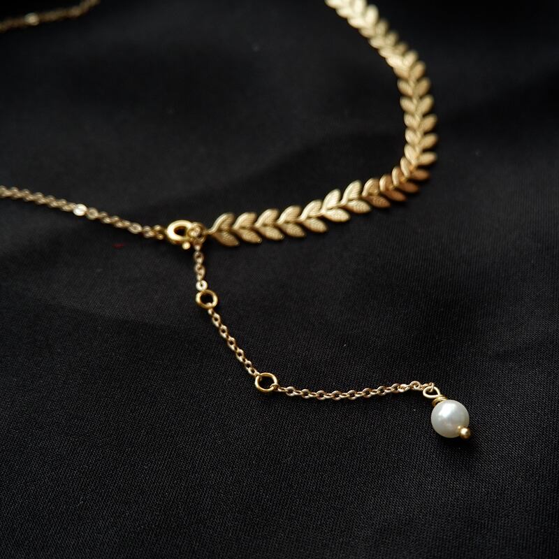 ネックレス ゴールド パール リーフ シンプル きれいめ エレガント 高見え yi364