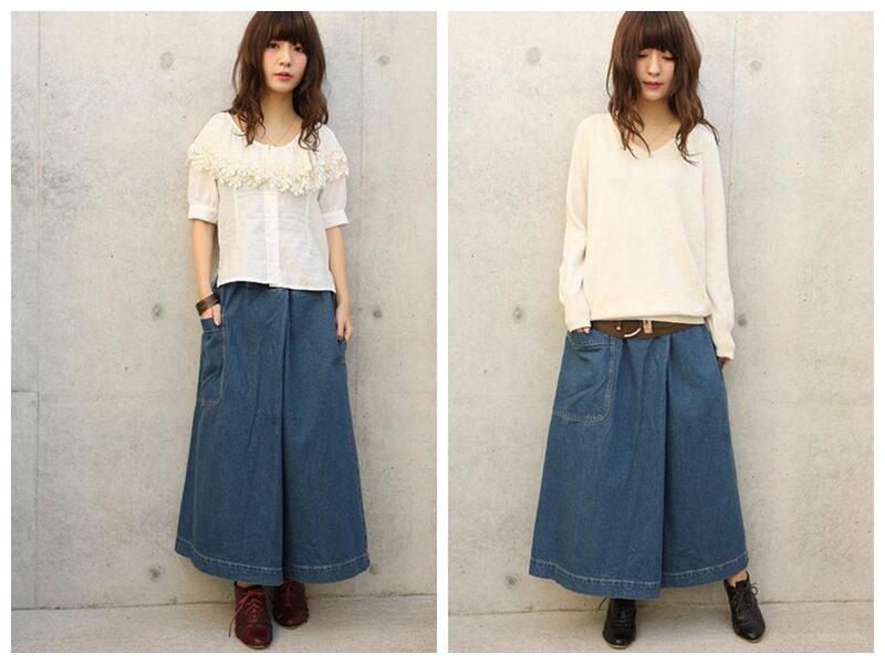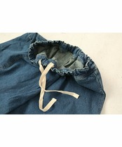 デニム ワイドパンツ ガウチョパンツ ウエストゴム ボトムス MH0165