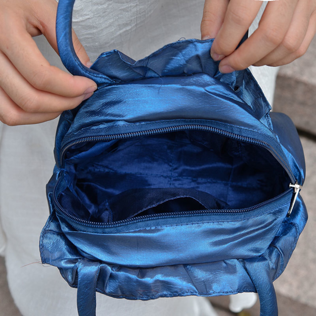 つるつるな肌触りのハンドバッグです。