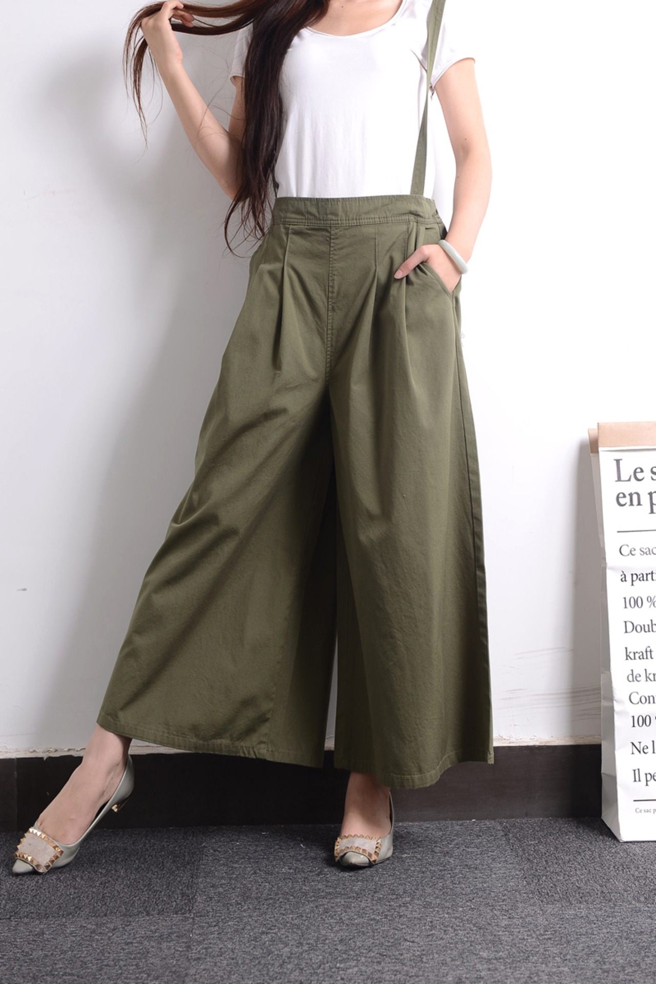 サスペンダー付き ワイドパンツ ワイドレッグ コットン ゆったり 大きいサイズ MH0271