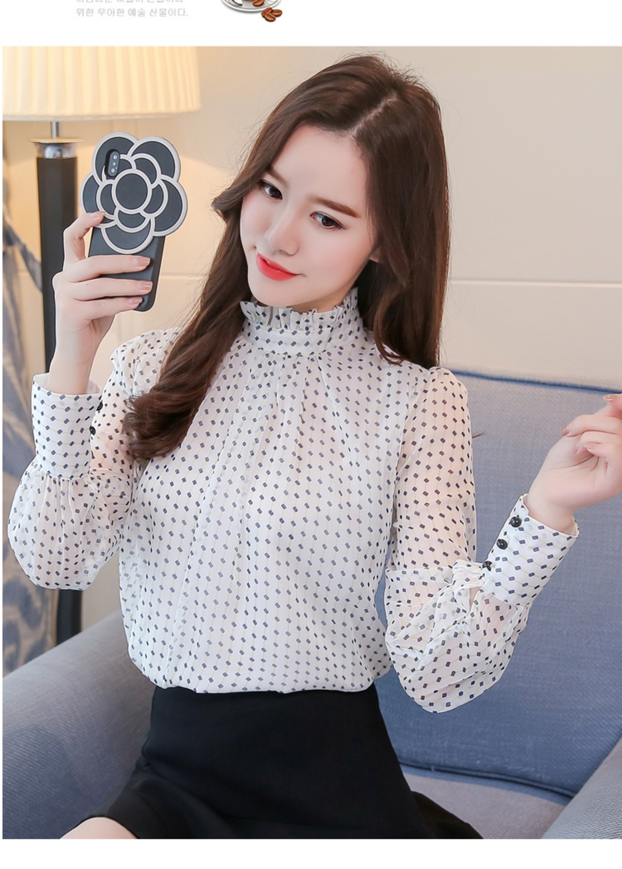 ドット柄 水玉 シフォンシャツ ブラウス 長袖 スタンドカラー サイズ豊富 MH0292