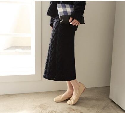 セットアップ セーター ニット スカート アランニット モミレ丈 Vネック 長袖 2色展開 スリット LiLi-0008