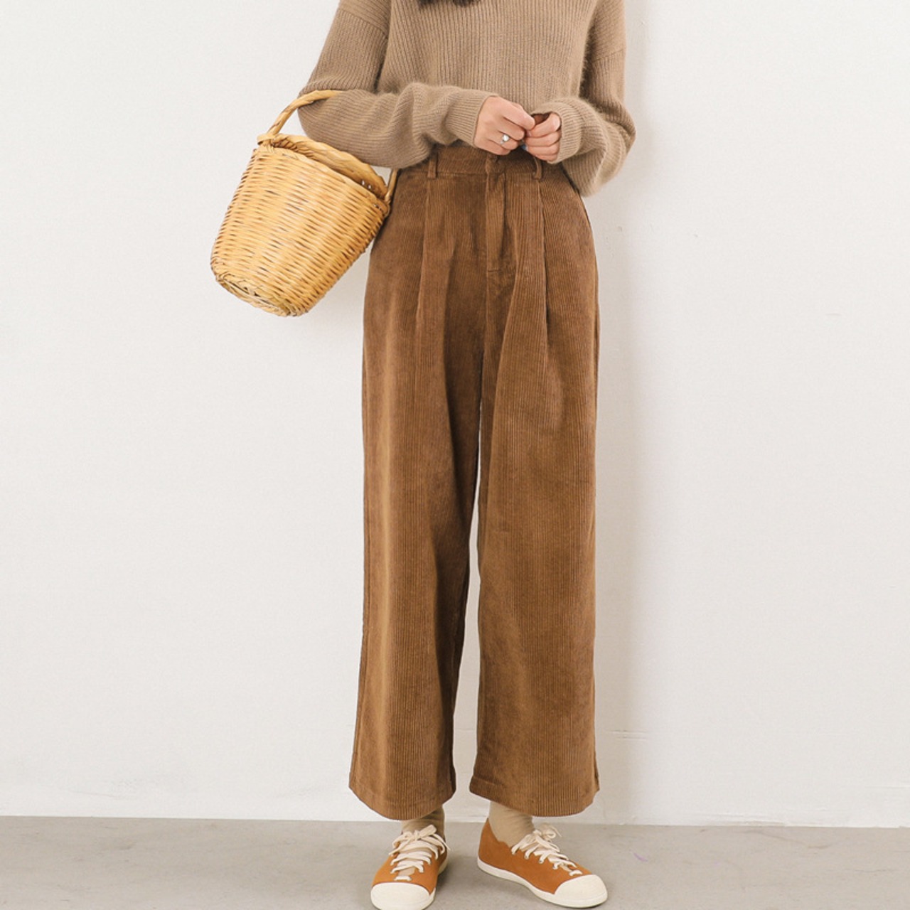 パンツ ワイドパンツ 無地 コーデュロイ ハイウエスト ロング丈 カジュアル ガーリー お出かけ 秋冬 yi508