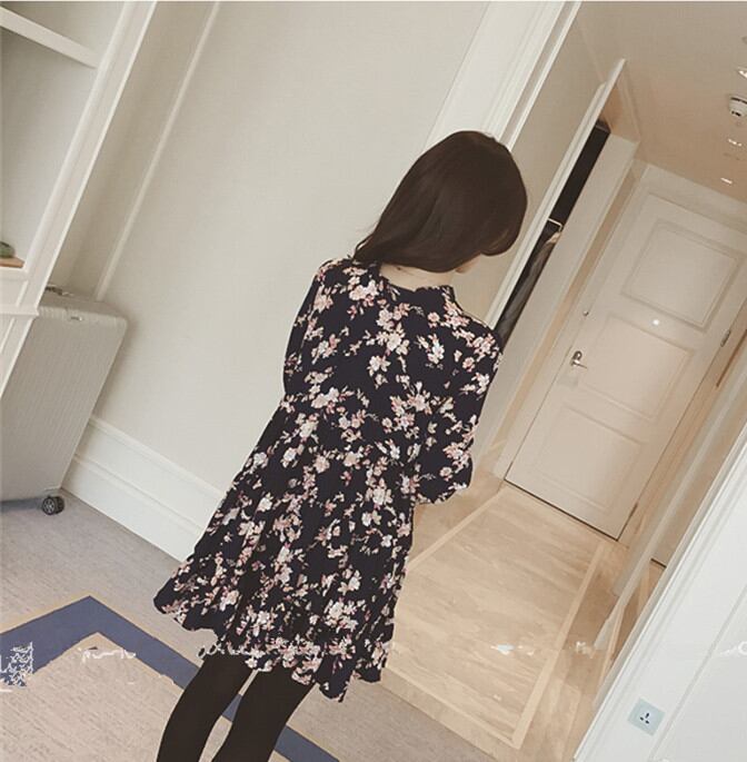 花柄 シフォンワンピース 長袖 ショート丈 ワンピース 秋新作 秋冬 MH0332