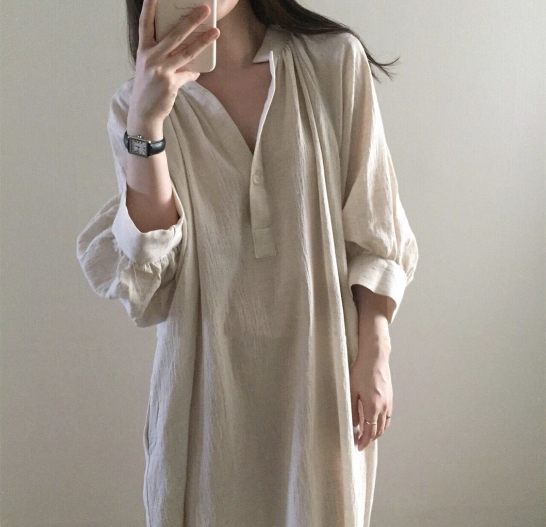 ロング丈 シャツワンピース シンプル 長袖 ナチュラル 白 秋 冬 MH0356