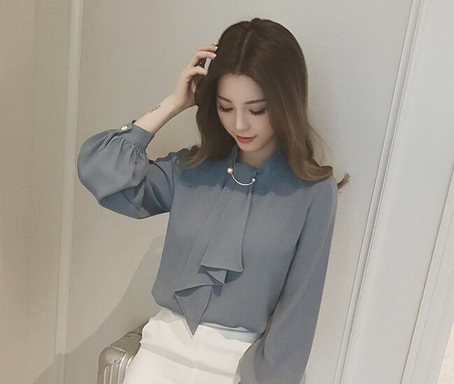 ブラウス シフォン 4色展開 長袖 とろみ素材 レディース LiLi‐0049