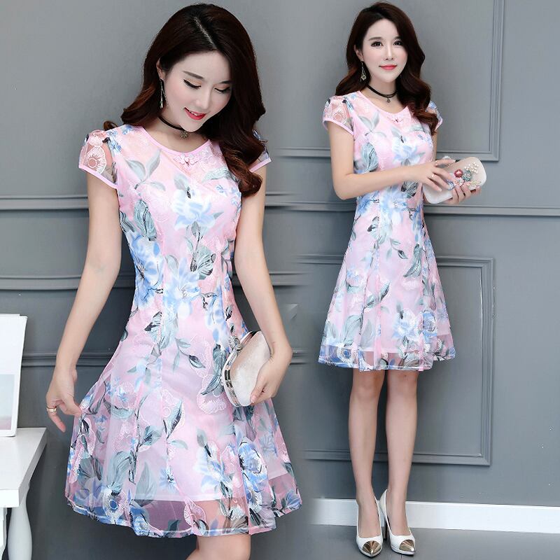 シフォンワンピース 半袖 ワンピース ボタニカル柄 花柄 パーティー 二次会 結婚式 MH0371