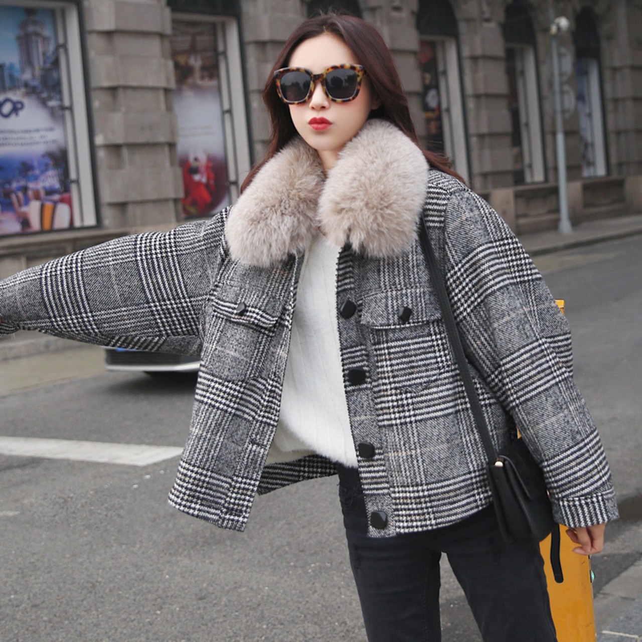 フェイクファー ファーコート コート チェック柄 グレンチェック アウター ウールコート MH0446