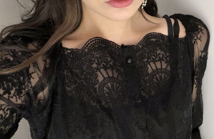 花柄 レースブラウス ブラウス レディース シャツブラウス シャツ トップス 長袖 ボートネック デコルテ 首元 黒 白 清楚 エレガント MH0541
