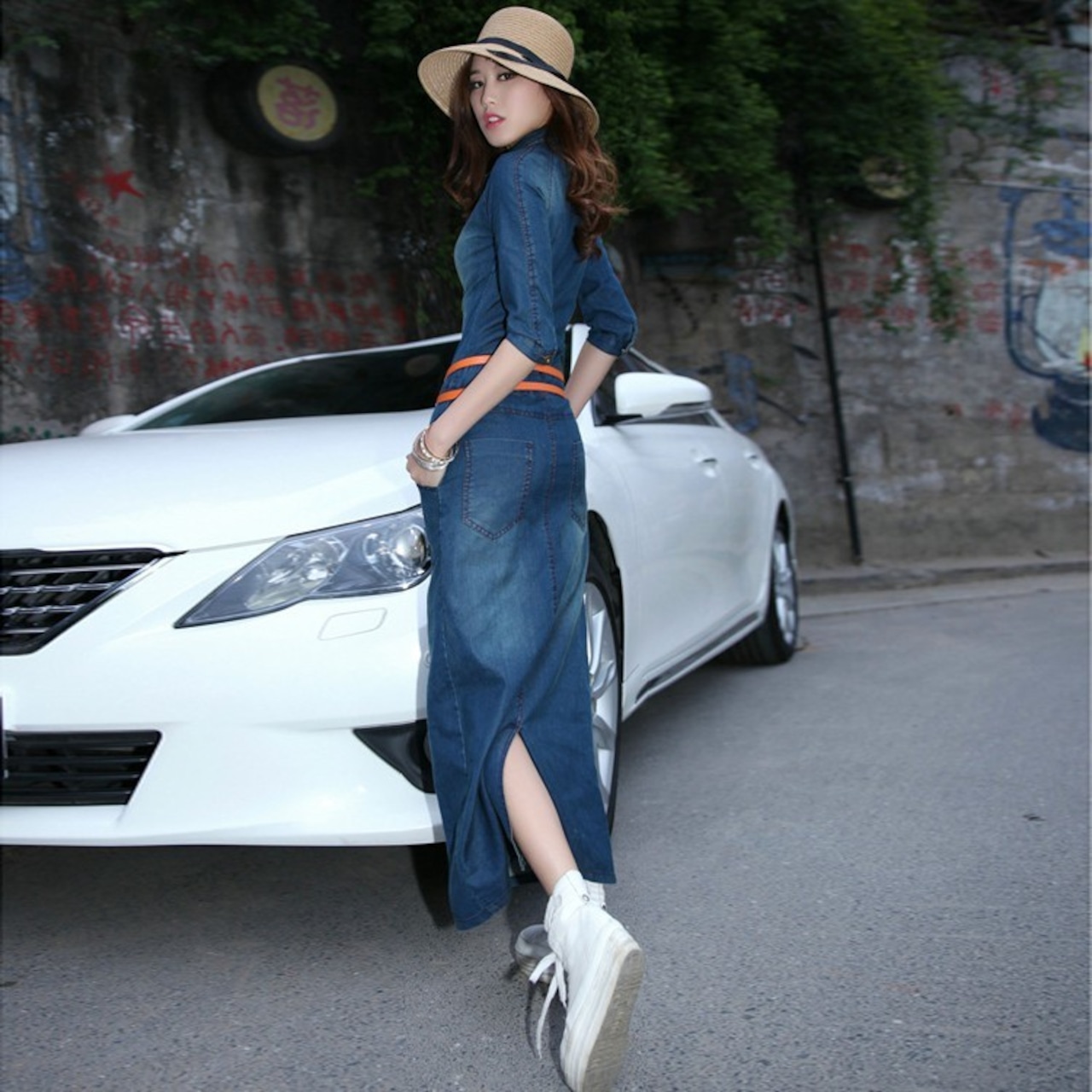 デニムワンピース デニム ワンピース ロング丈 マキシ丈 スリット入り カジュアル ママファッション ママコーデ ママ会 お出かけ 買い物 MH0554