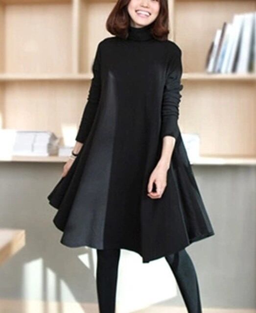 ワンピース チュニック 大きいサイズ マタニティドレス バイカラー ゆったり フレアスカート ひざ丈 ab1002