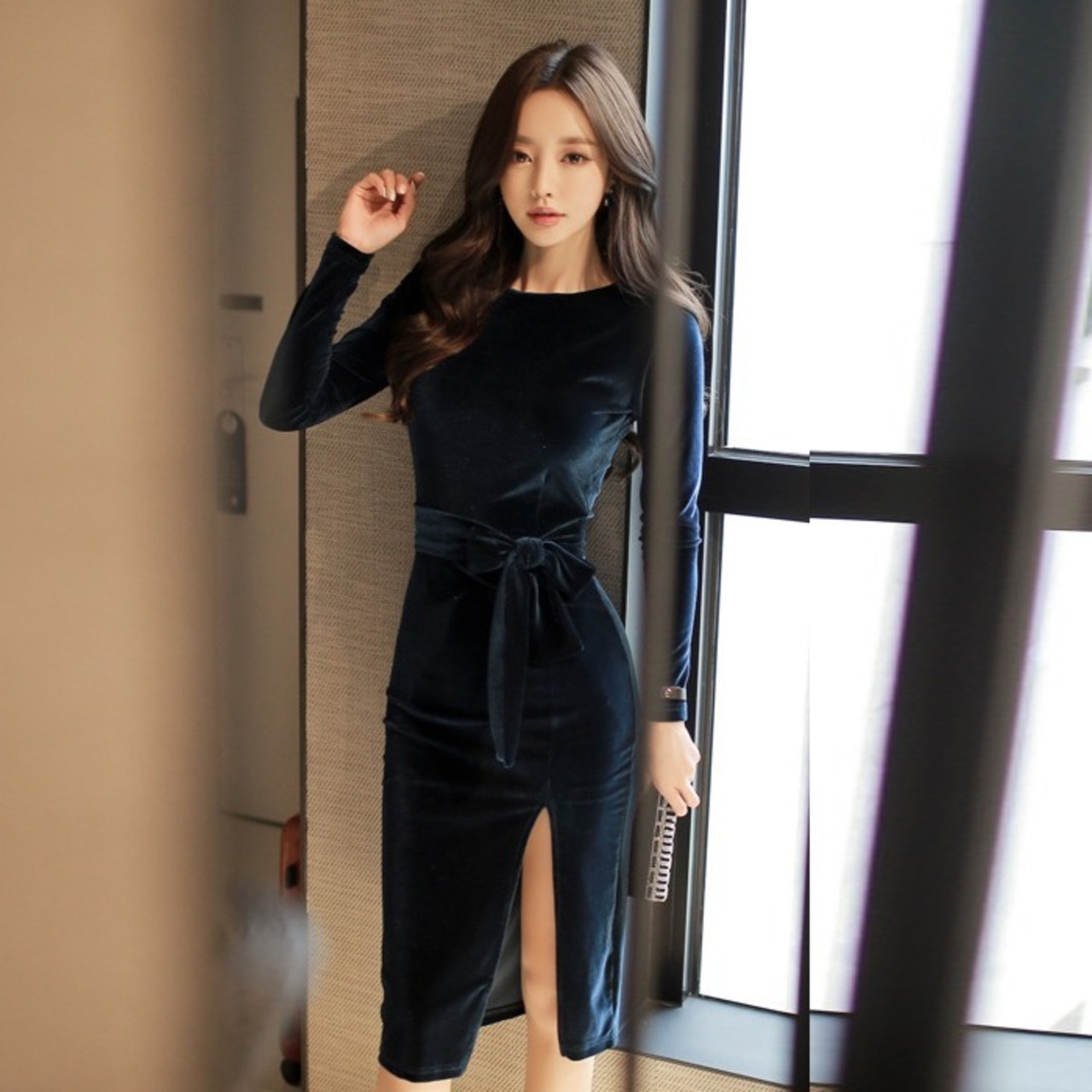 ベルベットドレス ベロアドレス ドレス ワンピース ドレスワンピース パーティードレス パーティー スリット入り セクシー 結婚式 二次会 お呼ばれ 食事会 大人可愛い MH0726
