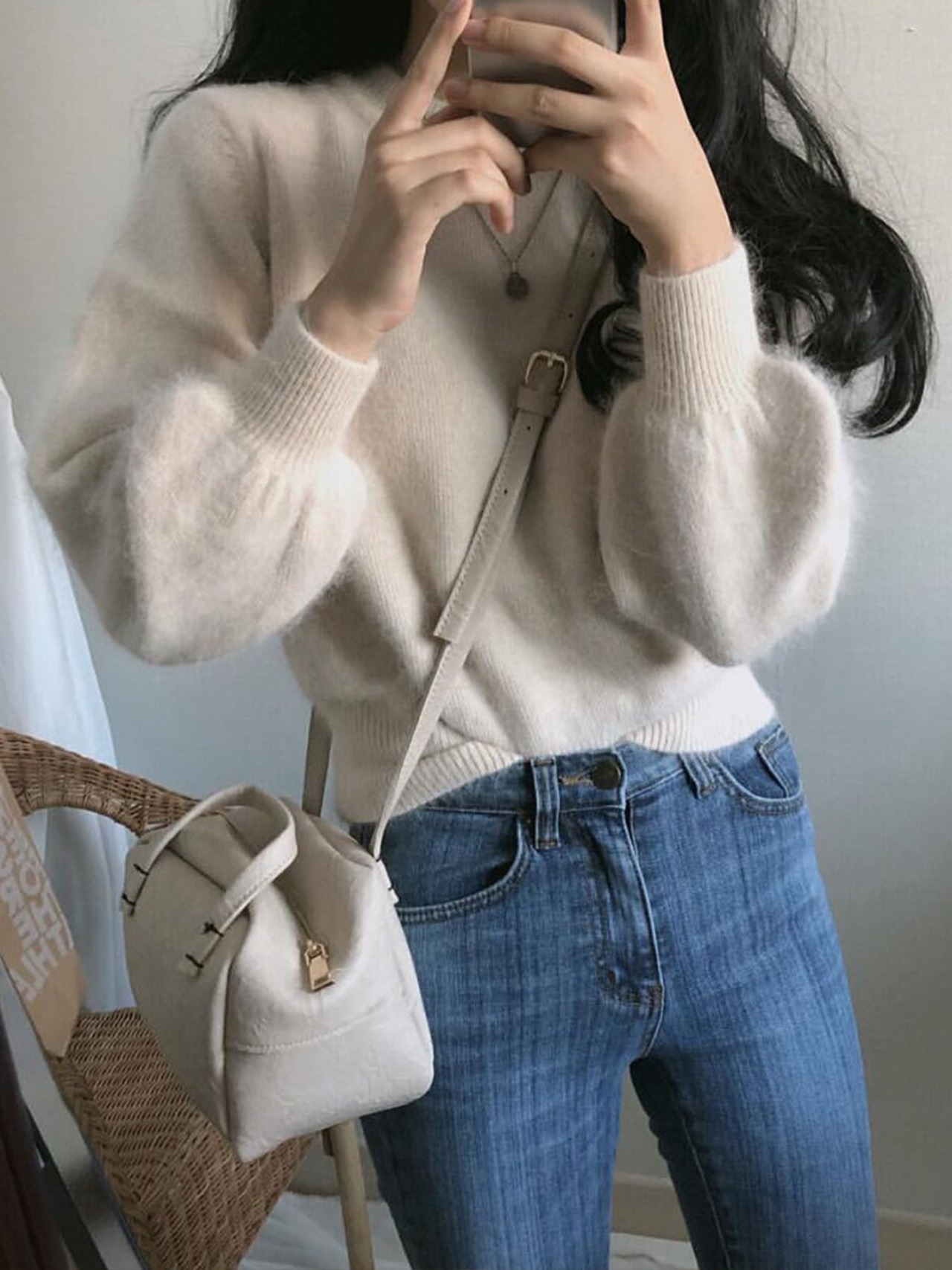 ニット セーター ニットセーター クルーネック ラウンドネック トップス レディース モヘアニット モヘア ボリューム袖 秋 冬 お出かけ デート 女子会 おしゃれ フェミニン MH0779