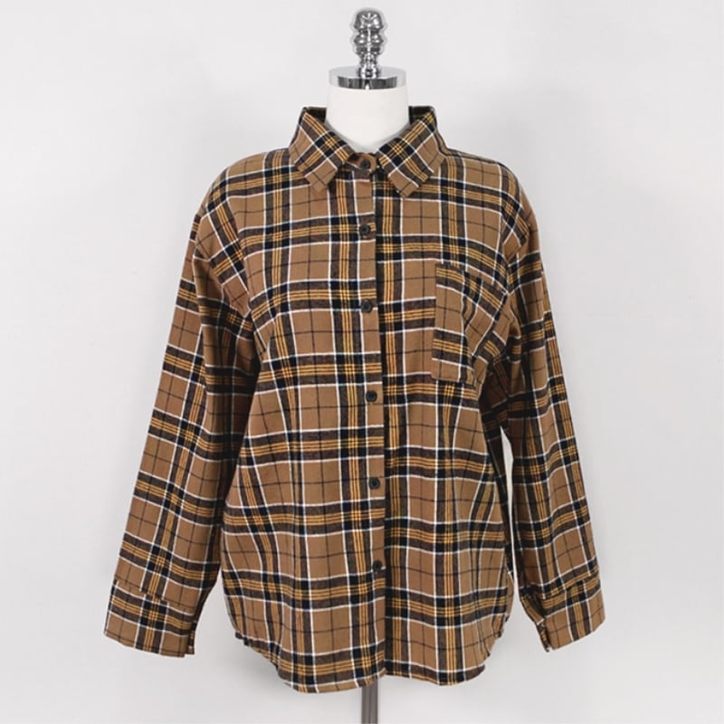 チェックシャツ チェック柄 シャツ ブラウス 長袖 トップス レディース レトロ ガーリー カジュアル 格子柄 秋 冬 学生 デート お出かけ 女子会 MH0825