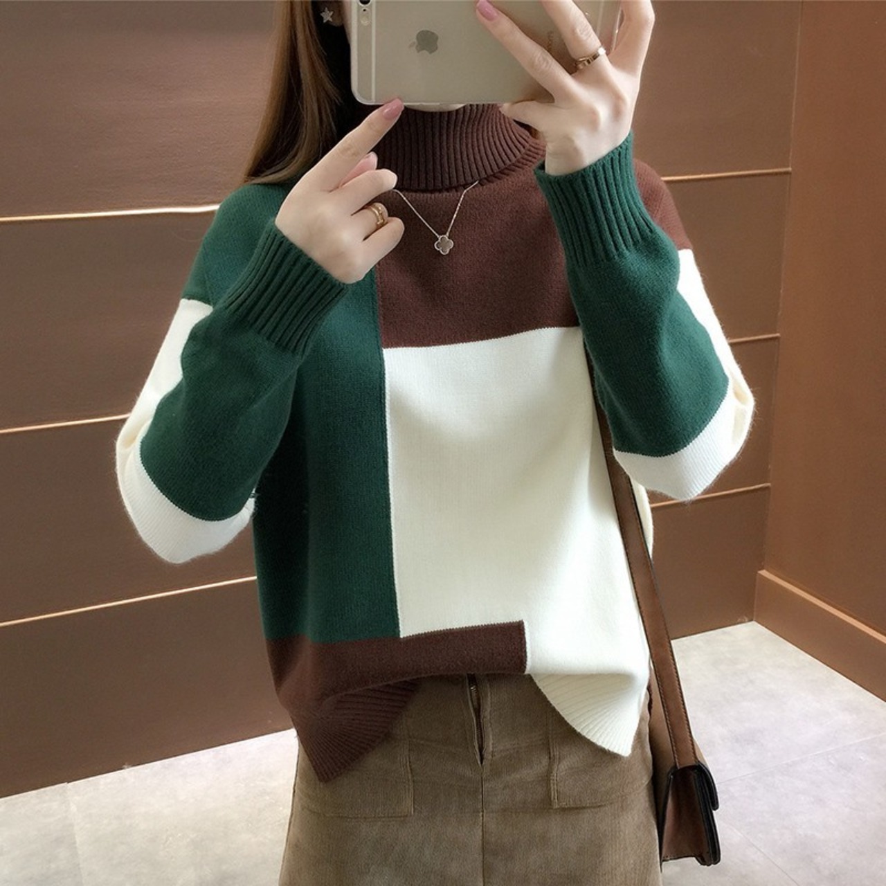 リブニット ハイネック タートルネック カラフル レトロ 長袖 トップス レディース 秋 冬 ニット ニットセーター セーター おしゃれ MH0849