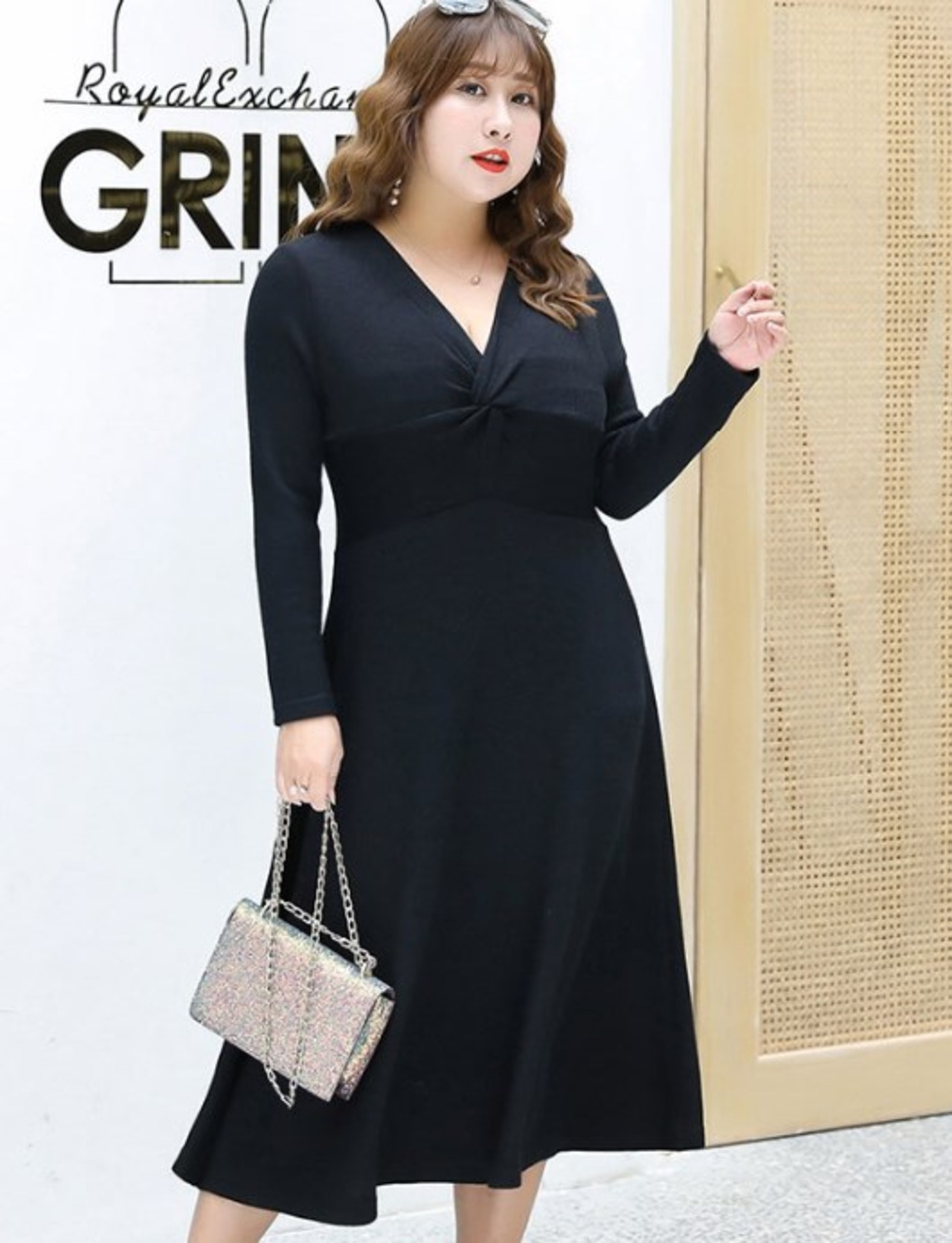 ワンピース 大きいサイズ レディース 秋冬 膝丈 深Vネック セクシー Aライン ハイウエスト シック ab1134