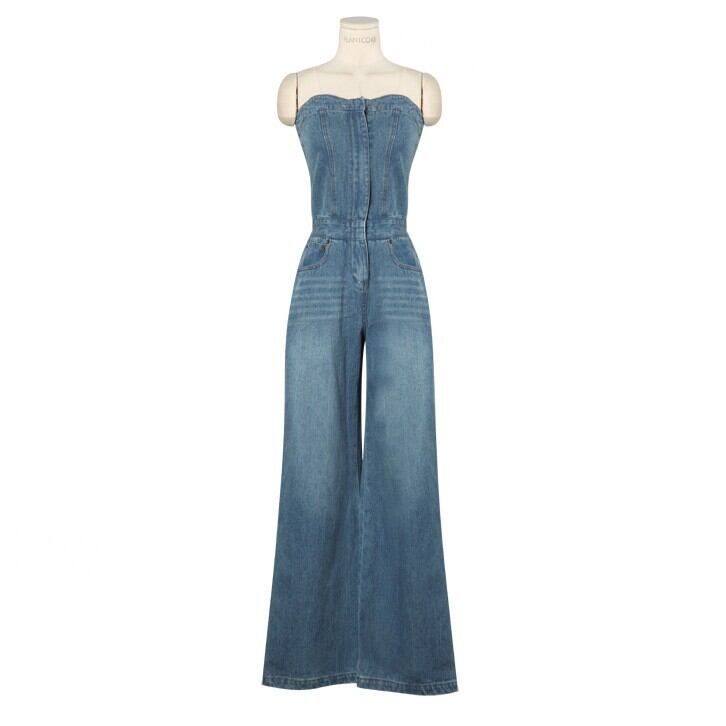 オールインワン サロペット レディース ワイドパンツ ロング丈 デニム ベアトップ カジュアル 春夏 yi684