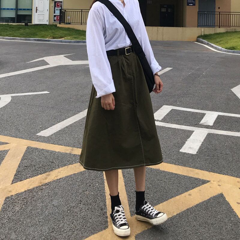 スカート レディース ロング丈 ロングスカート ミモレ丈 ハイウエスト 無地 カジュアル ガーリー 春夏 yi707