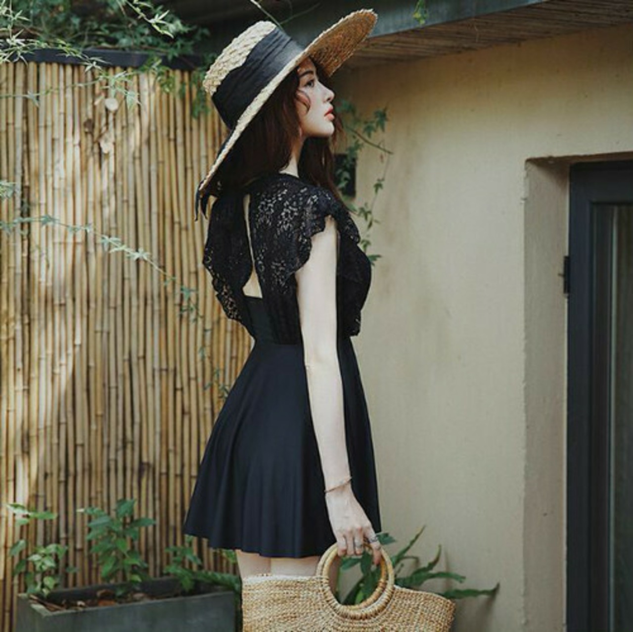 水着 レディース ワンピース水着 無地 黒 レース フレア 花柄 セクシー 大きいサイズ 体型カバー 夏 yi754