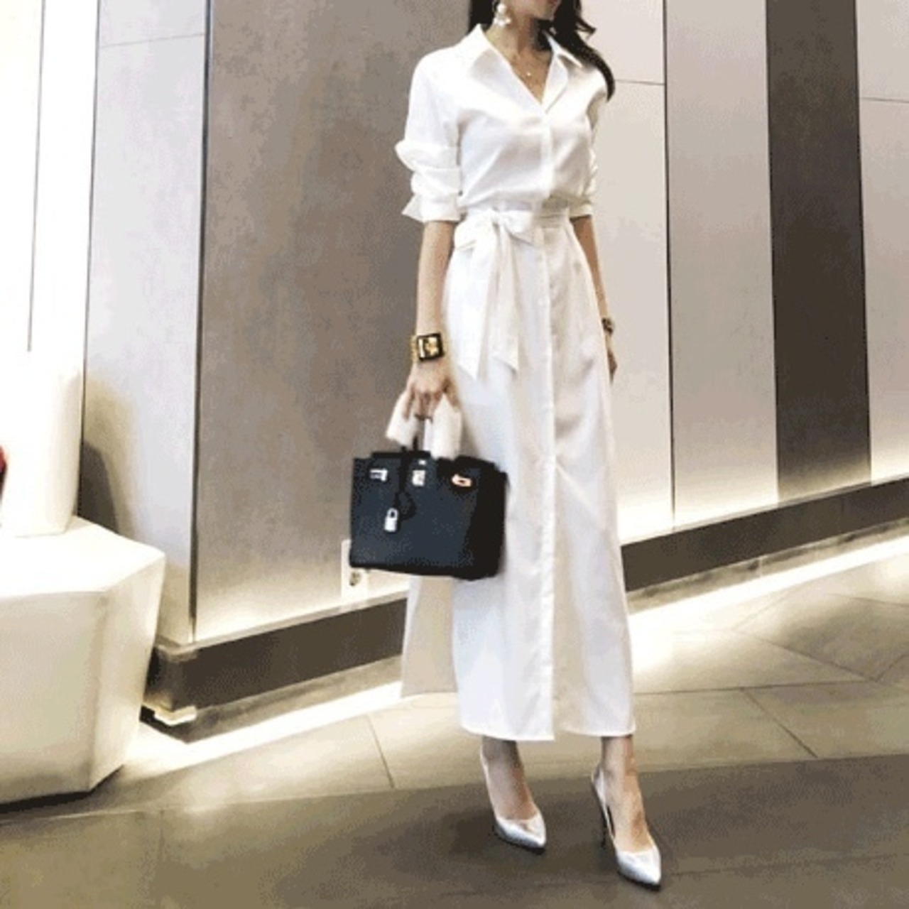 大人っぽく決まるシャツワンピース。