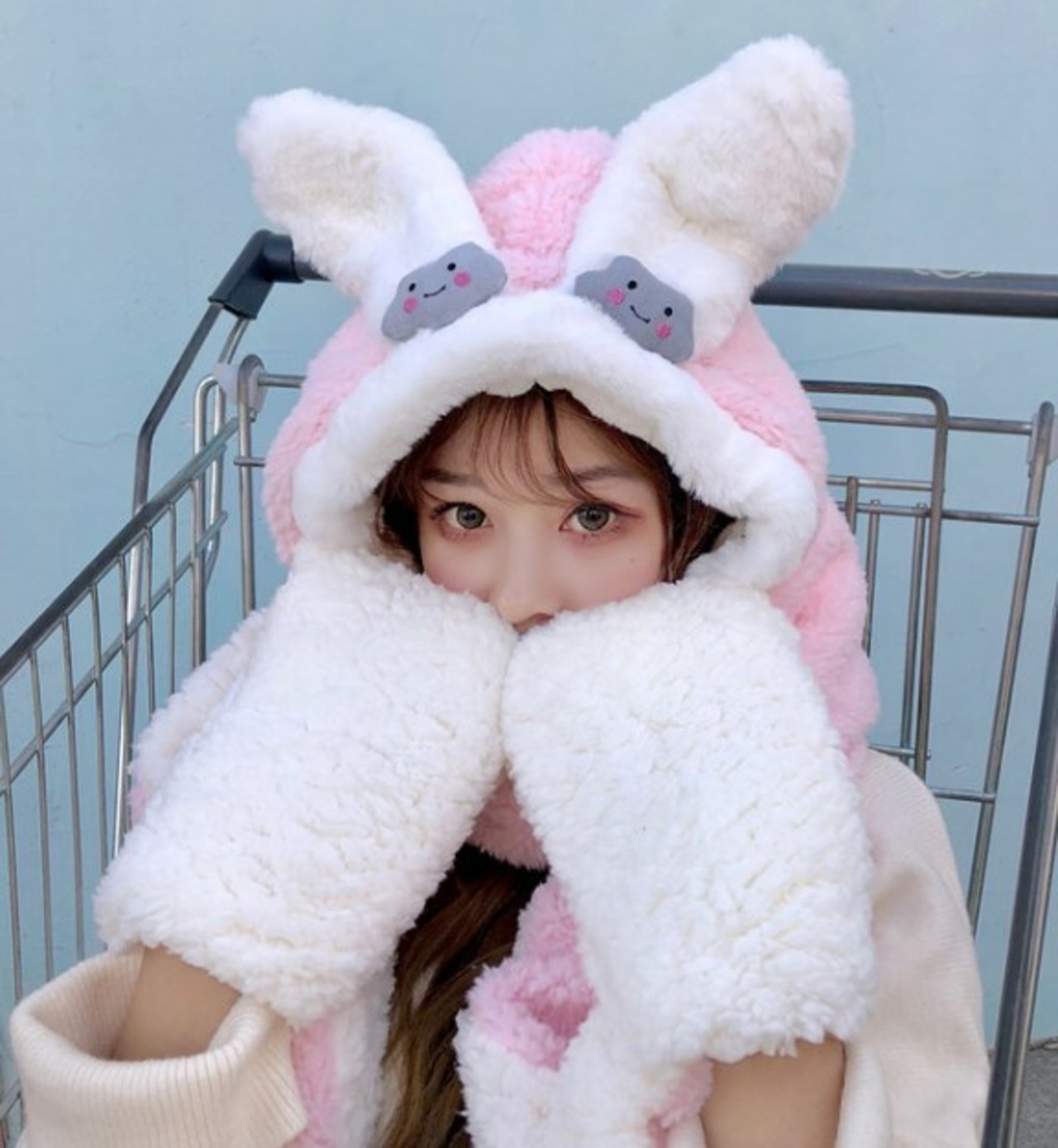 帽子 キャップ イヤープロテクター バニーイヤー うさぎ耳 手袋 レディース 可愛い ab1207