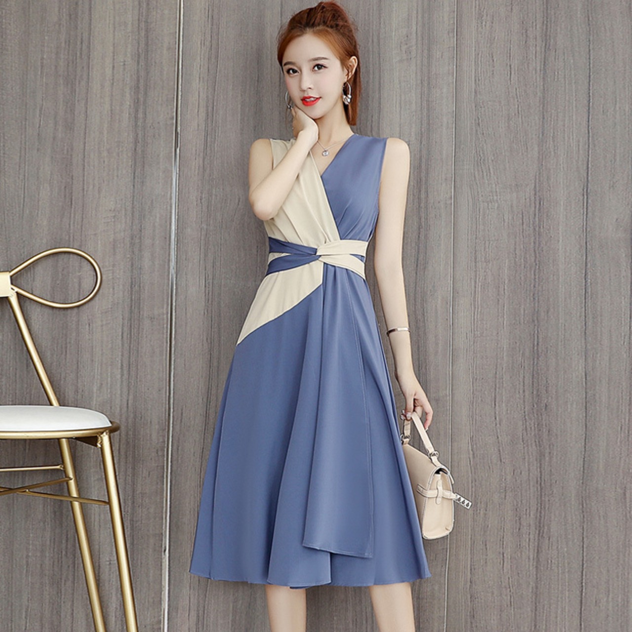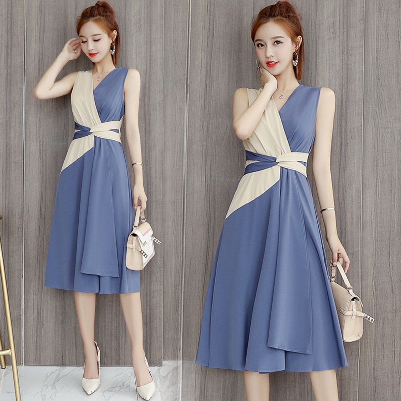 ノースリーブ ワンピース Aライン 膝丈 フレア スカート デート およばれ パーティー MH0907