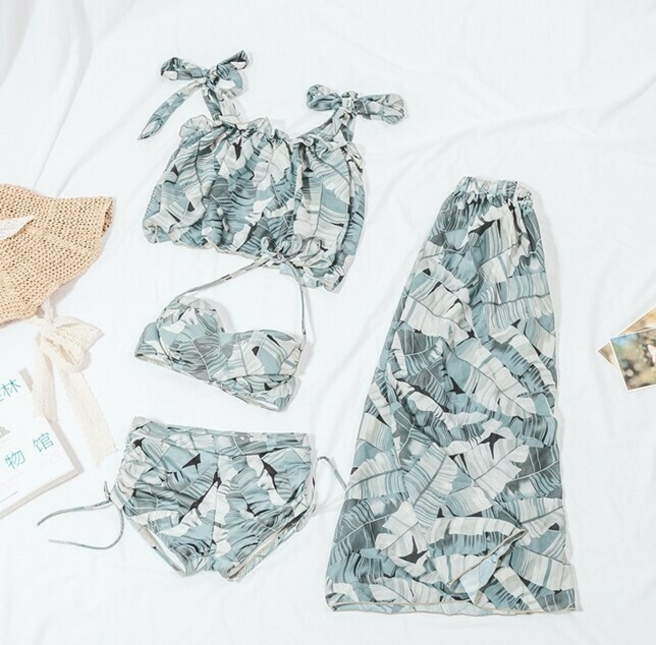 水着 レディース ビキニ パンドゥビキニ 4点セット水着 ホルターネック ボヘミアン フェミニン 体型カバー リゾート 夏 yi805