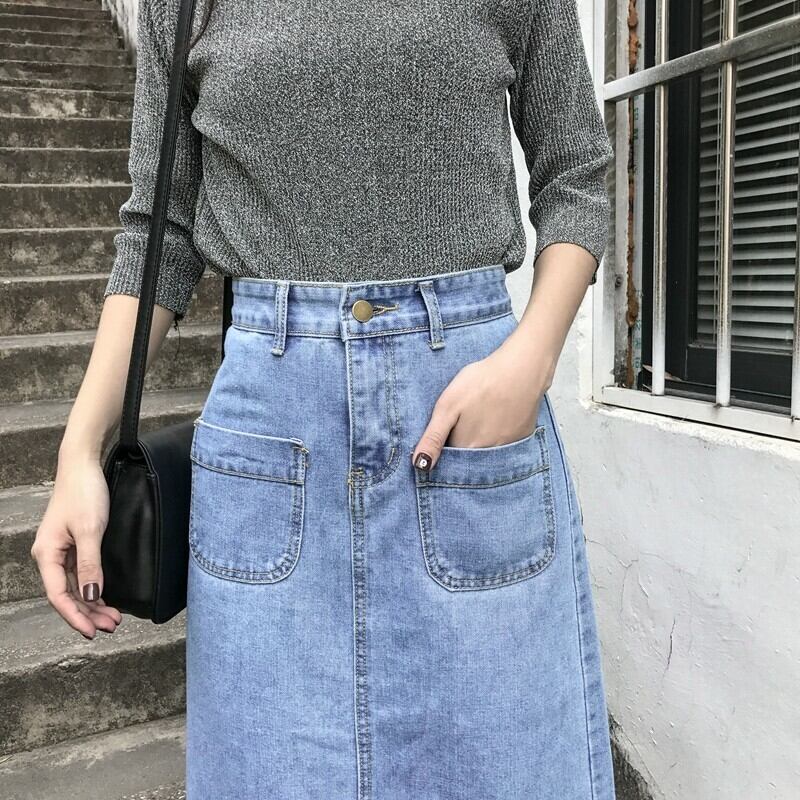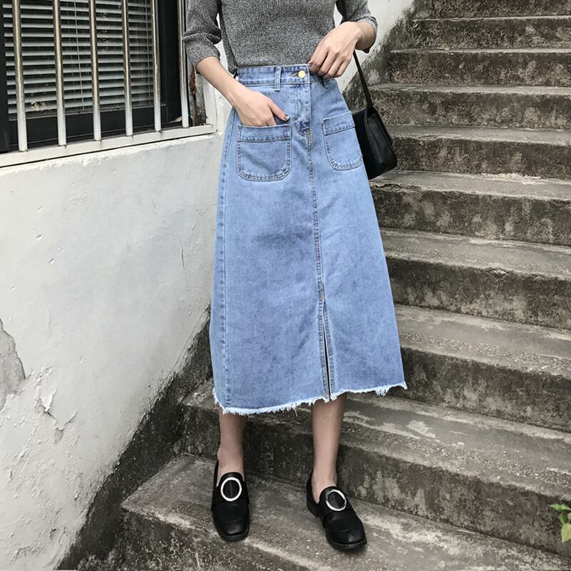 デニムスカート デニム スカート ミモレ丈 スリット ボトムス ハイウエスト カジュアル ガーリー シンプル Aライン MH0917