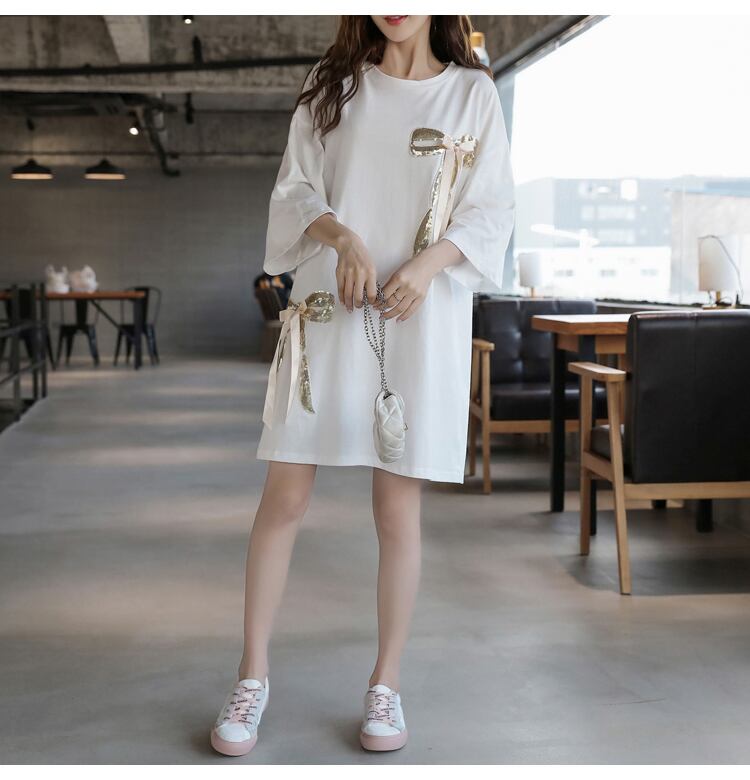 ロングTシャツ ロンT ビッグシルエット リボン カットソーワンピース カットソー シャツ カジュアル ガーリー ゆったり 大きいサイズ MH0946