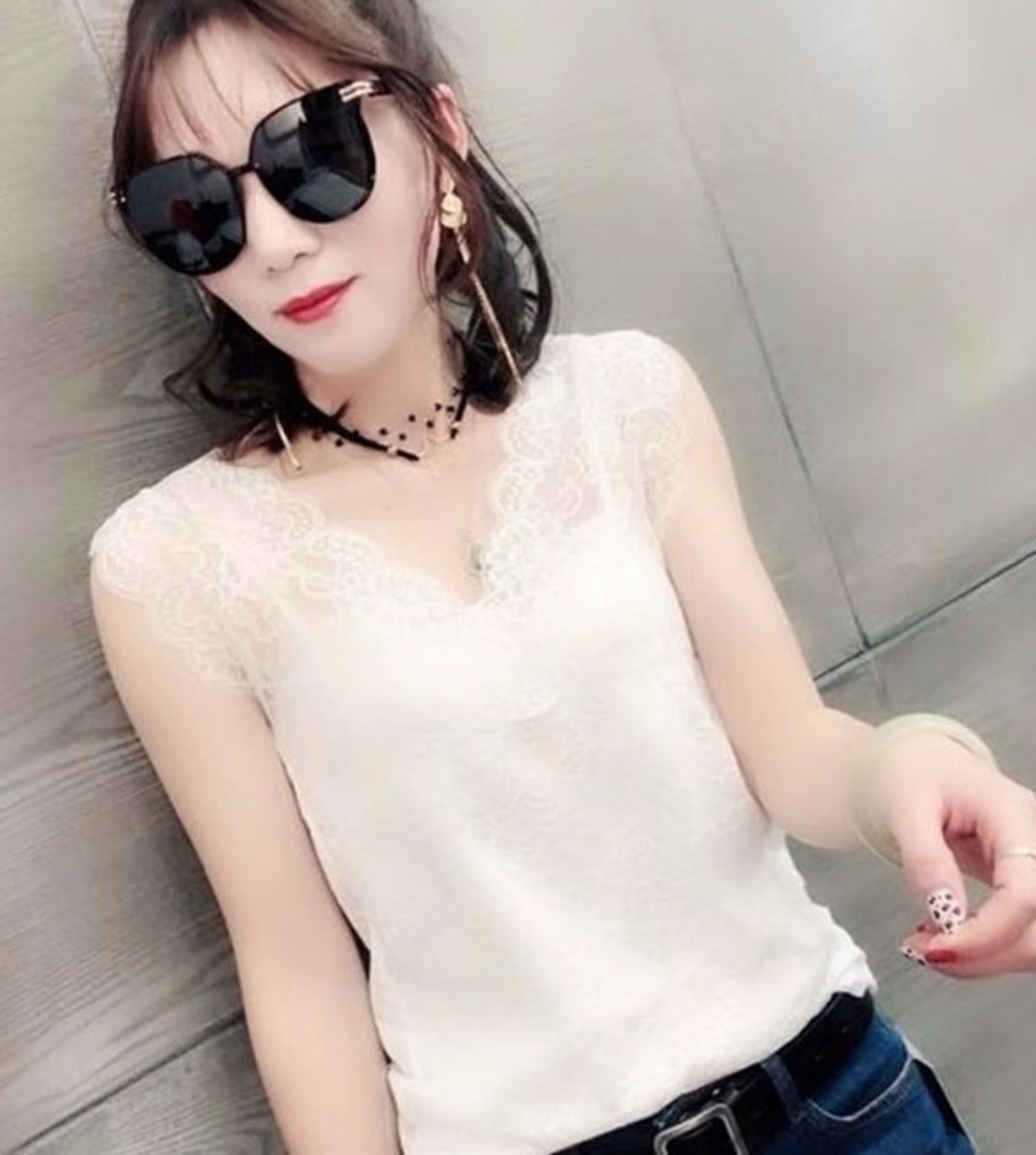 キャミソール タンクトップ レディース インナー Vネック レース セクシー フリル ab1239